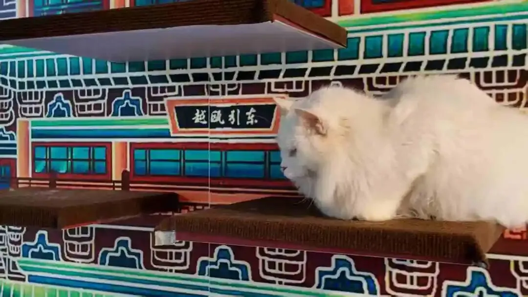 更特别的是,滕王阁成了它们的猫爬架,