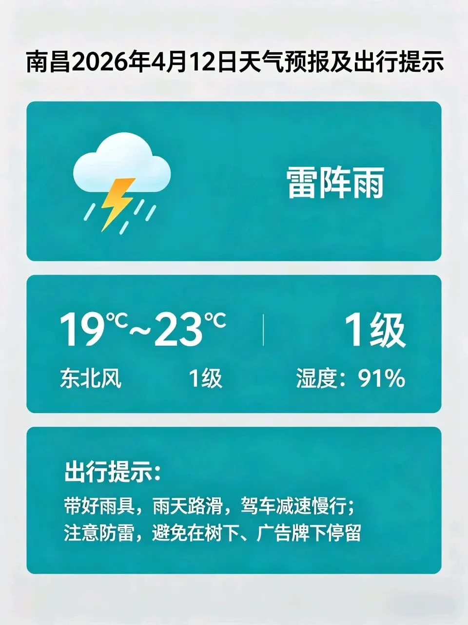 >23℃!雷阵雨!南昌明天天气