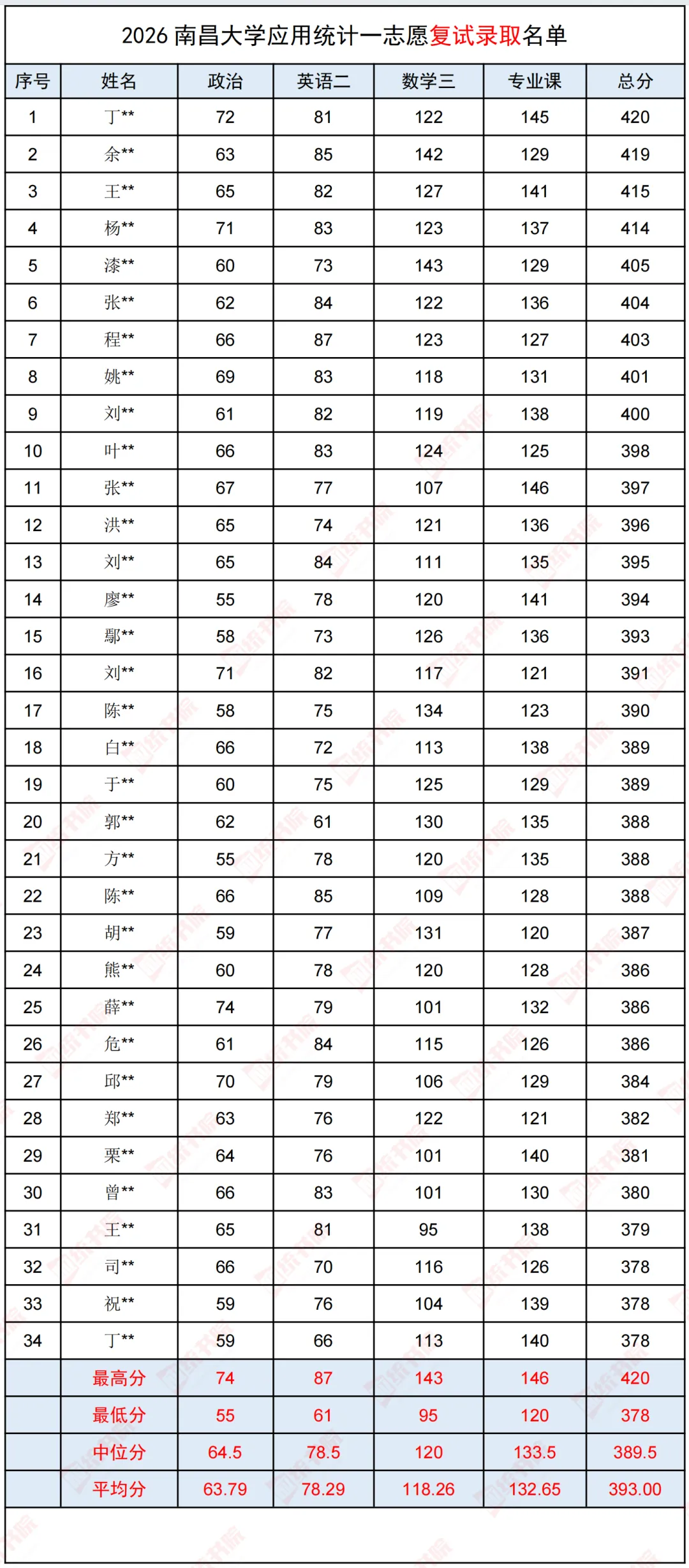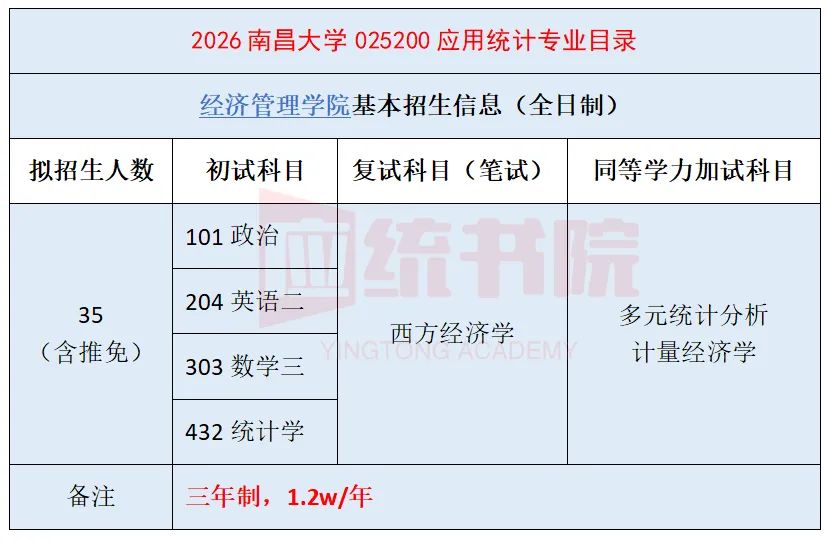 2026南昌大学应用统计推免录取12人(2025推免录取3人),按照专业目录的计划人数,剩余统考名额约有35-12=23人。若按照去年的招生总规模(3+35),2026最后统考可能扩招至38-12=26人