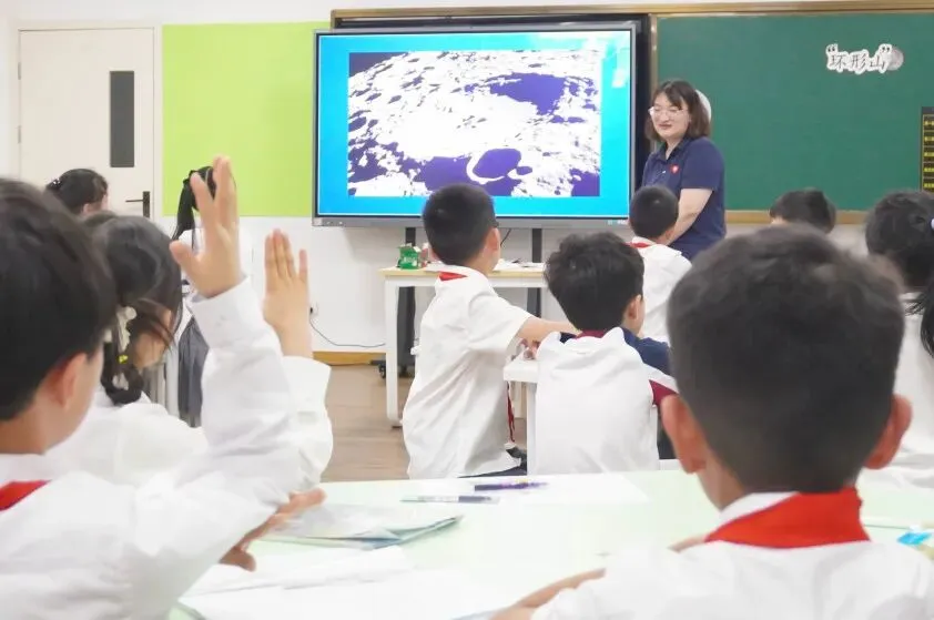 第一节课由张隽瑶老师与三(2)班学生共同呈现《我们来造“环形山”》。
