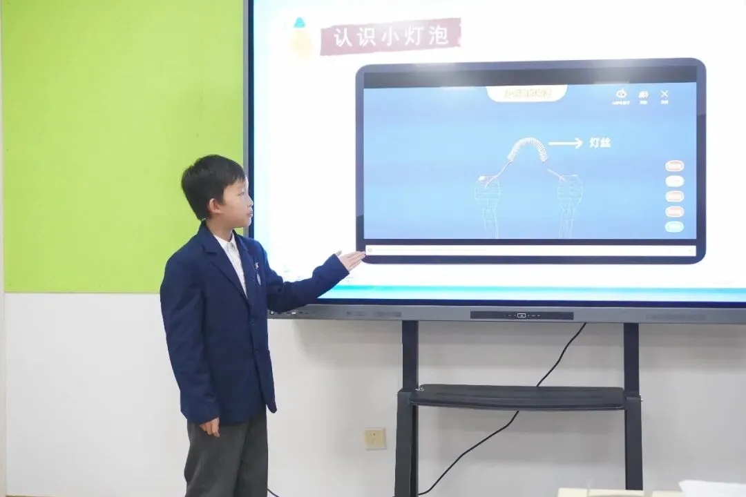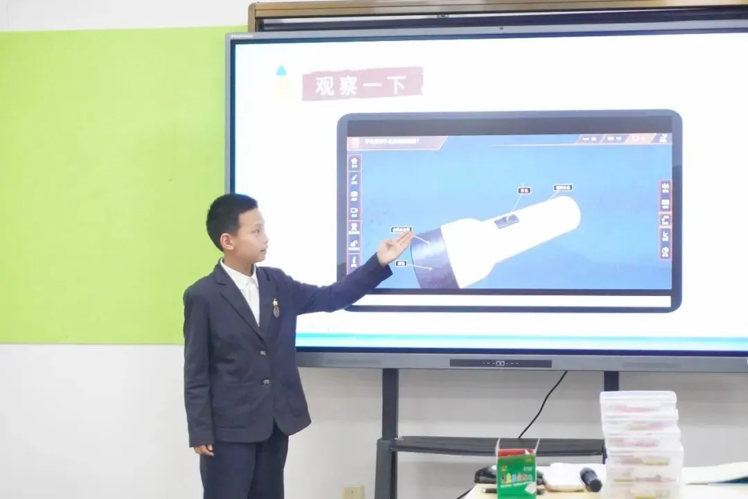 课堂中,多位“小老师”轮番登场:有的介绍手电筒结构,有的讲解小灯泡内部构造,有的演示电流路径——这正是我校“费曼教学法”的生动实践,让学生通过“传授给他人”来深化自己的理解。