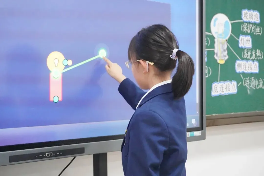 胡老师还借助AI技术辅助教学,通过虚拟实验室直观展示不同电路连接方式的实验结果,帮助学生清晰理解“通路”“断路”“短路”等概念。