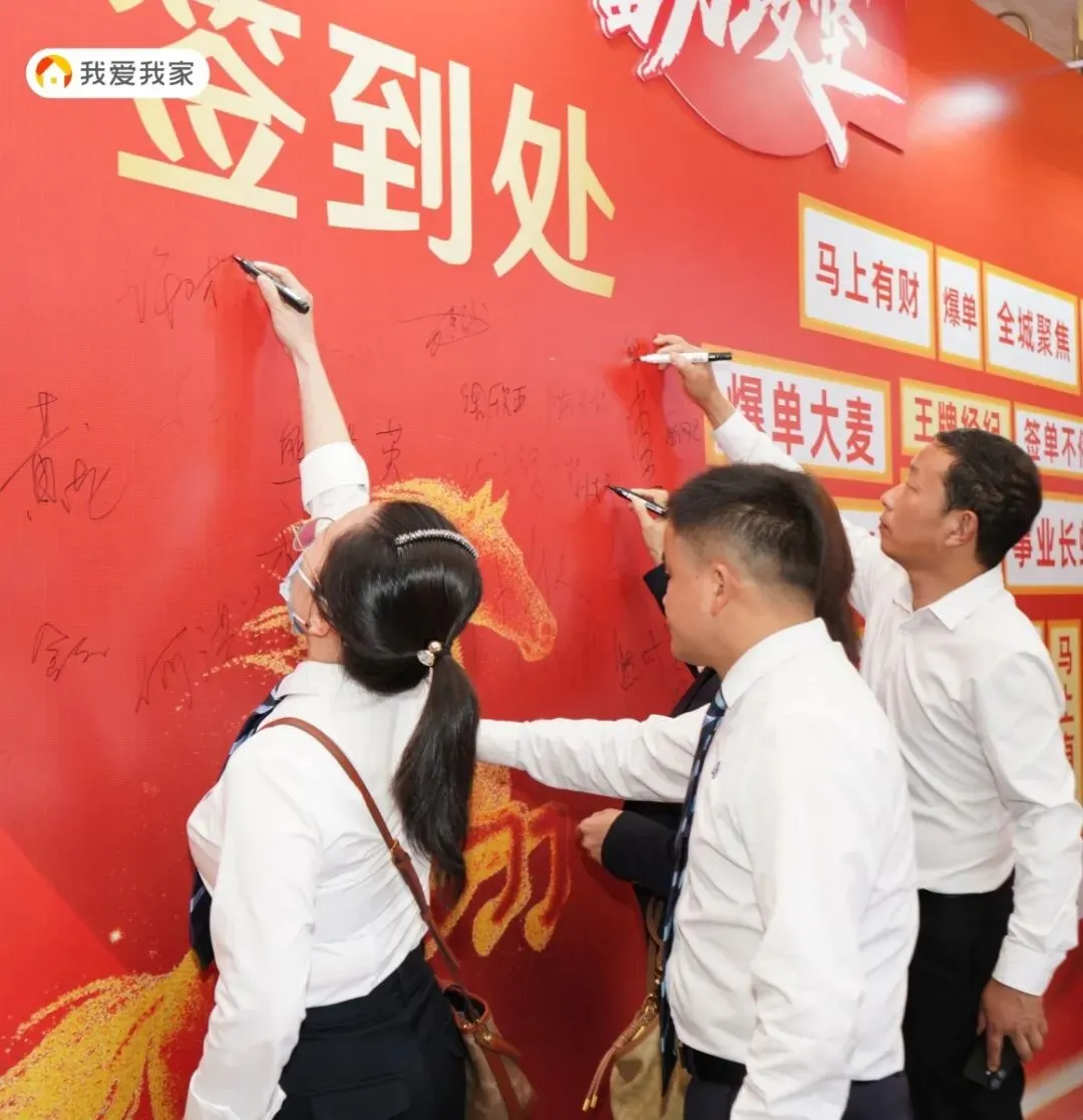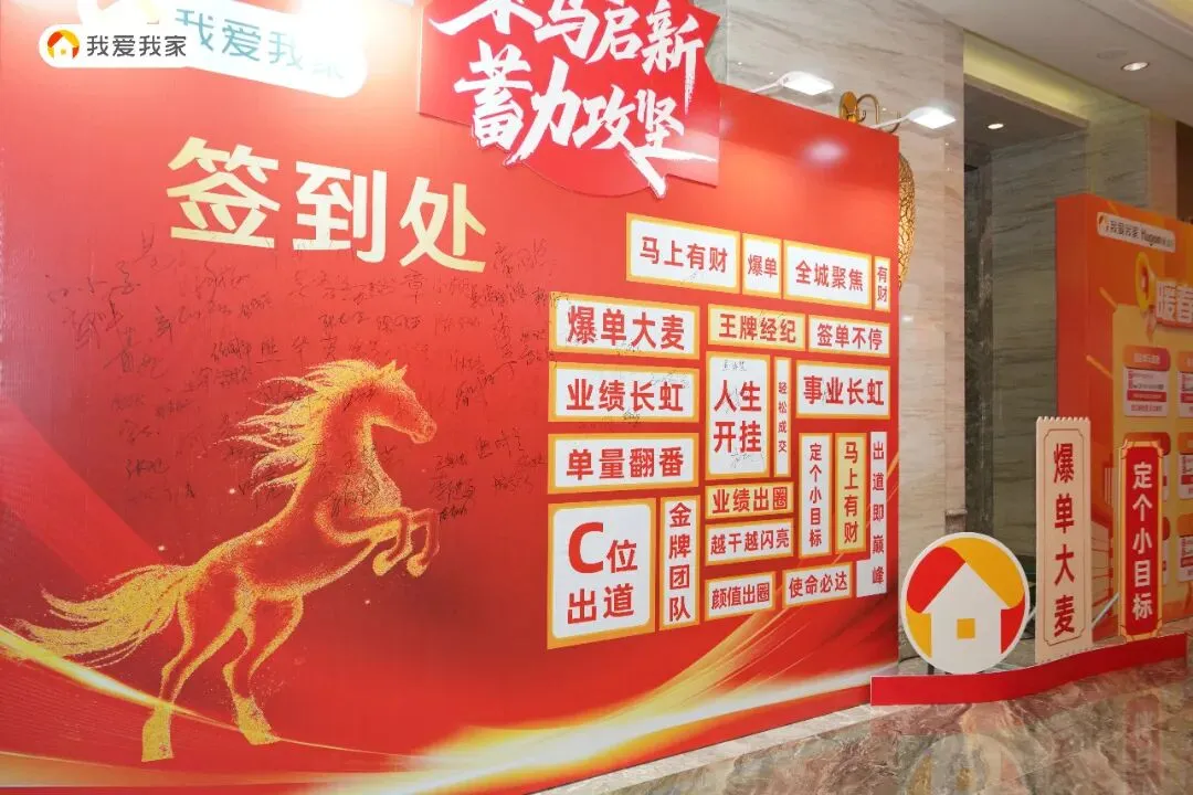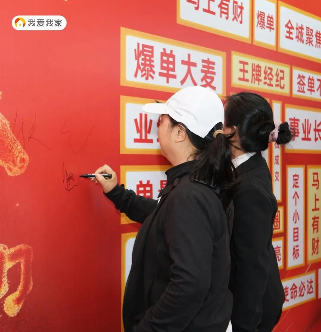 午后时分,家人们如约而至,在签到墙前打卡留影。“爆单大麦、业绩长虹、签单不停、使命必达”的热血标语,尽显爱家人的拼搏底色,更传递着策马启新、蓄力攻坚的奋进力量。
