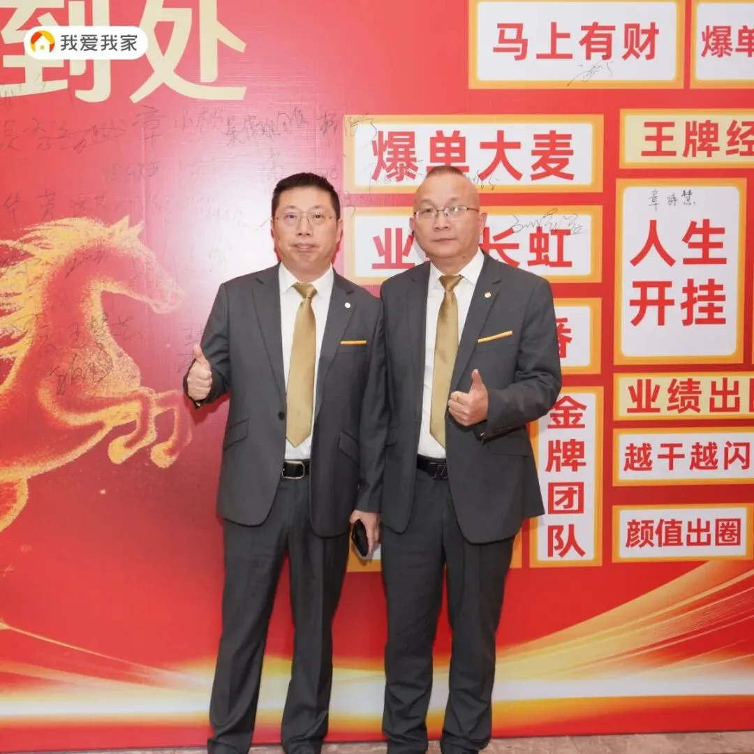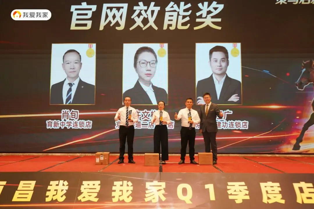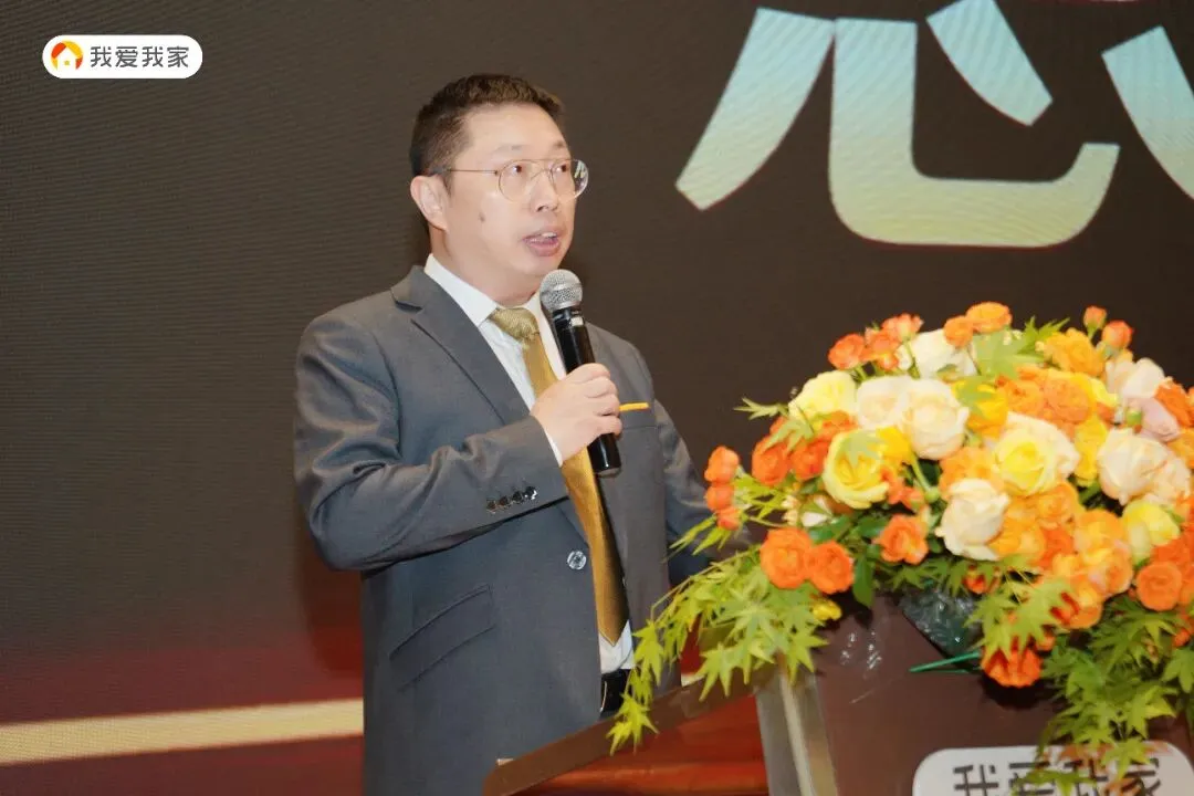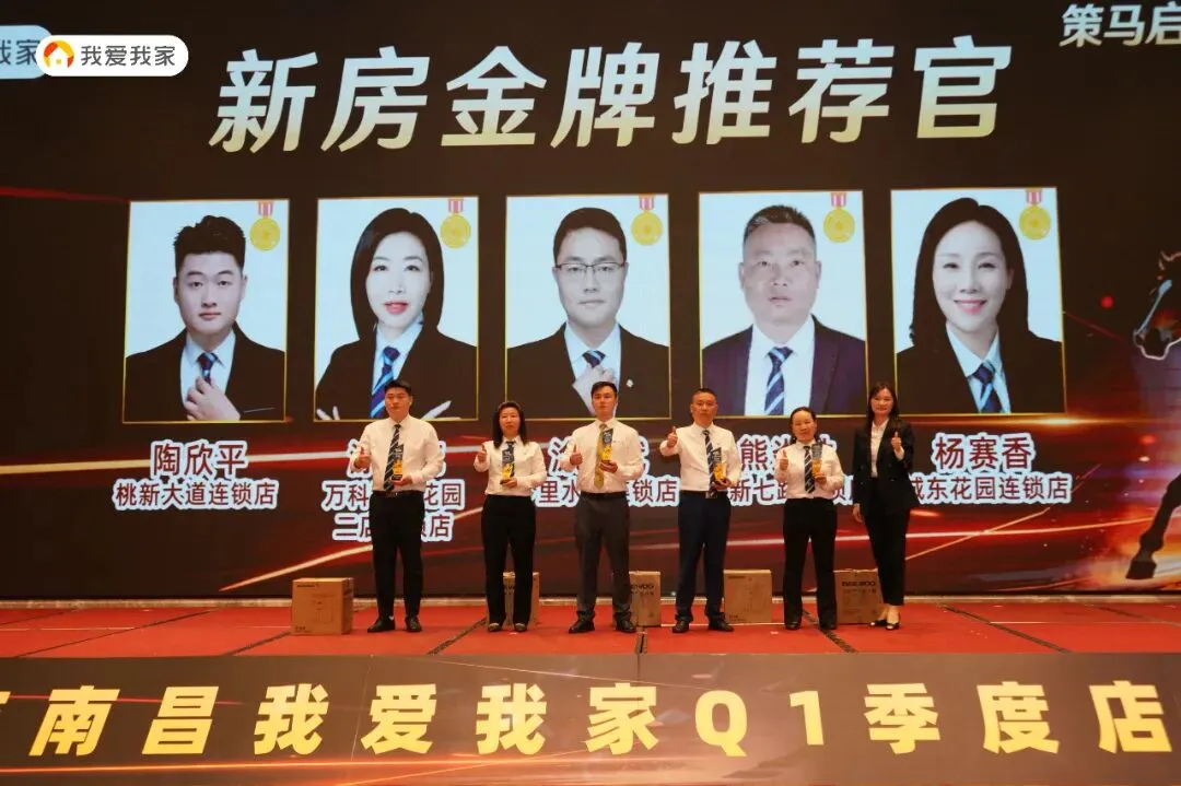 随后,南昌我爱我家总经理吴伟先生登台致辞。他首先回顾了第一季度市场形势,恭喜了大家在3月取得的开门红好成绩,表示南昌楼市已经呈现了“二手房量增价稳、新房降幅收窄”态势。也预告了公司接下来的运营策略,并号召全体家人:“策马启新,蓄力攻坚,一起赢在2026!”