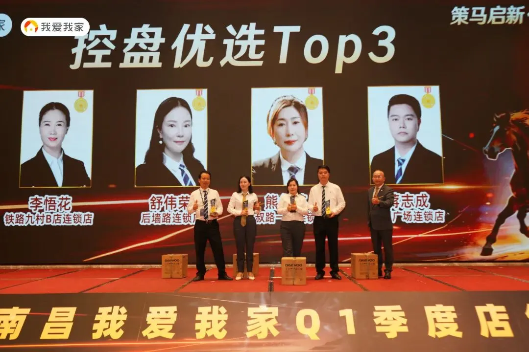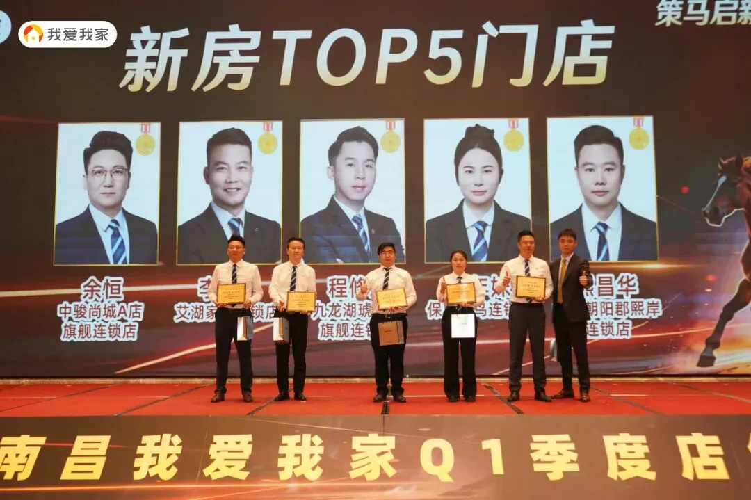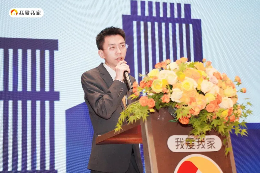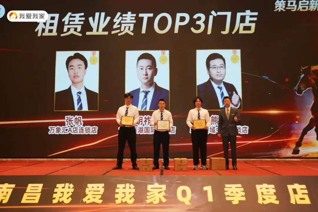 随后,南昌我爱我家总经理吴伟先生登台致辞。他首先回顾了第一季度市场形势,恭喜了大家在3月取得的开门红好成绩,表示南昌楼市已经呈现了“二手房量增价稳、新房降幅收窄”态势。也预告了公司接下来的运营策略,并号召全体家人:“策马启新,蓄力攻坚,一起赢在2026!”