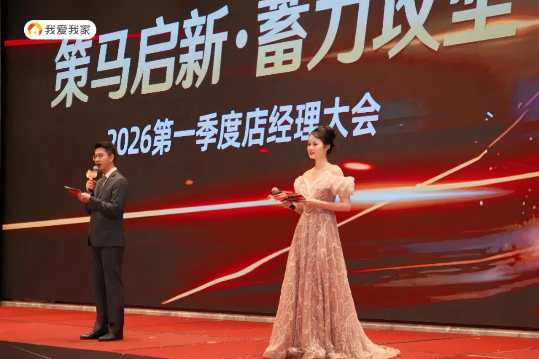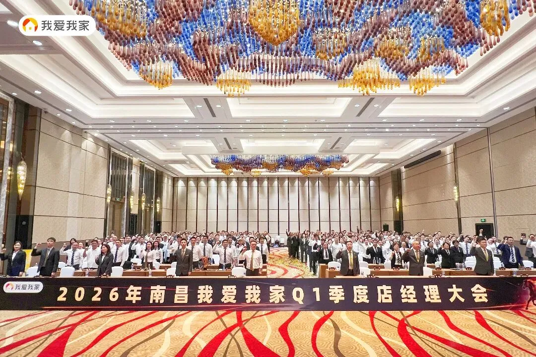 2026年4月10日,南昌我爱我家「策马启新·蓄力攻坚」2026年Q1季度店经理大会在红谷滩喜来登酒店四楼盛大召开。各连锁分部经理齐聚一堂,复盘开局、锚定全年目标,以奋进之姿,共启新征程。