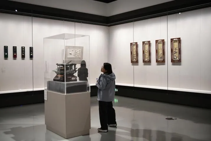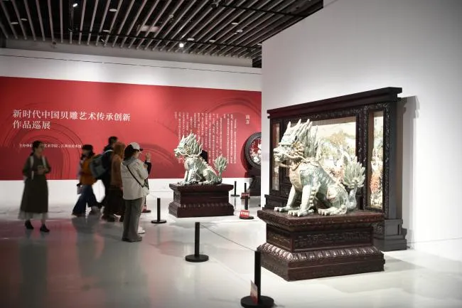 春光正盛,惠风和畅,江西省美术馆三楼六号展厅,最后一件展品在灯光下调试到位,“贝艺匠薪:新时代中国贝雕艺术传承创新作品巡展”江西站开幕。