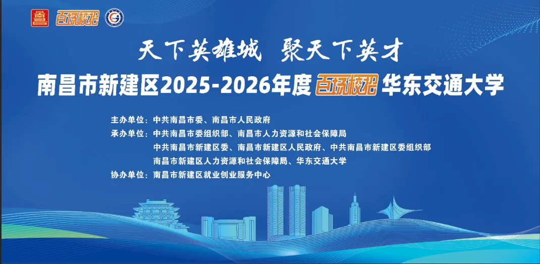 青春逐梦正当时,轨道扬帆启新程!为深入贯彻"天下英雄城 聚天下英才"人才战略,精准对接华东交通大学轨道交通特色学科优势与南昌市新建区产业发展需求。4月11日,由中共南昌市委市政府、南昌市新建区委区政府、南昌市新建区人力资源和社会保障局等相关部门与华东交通大学联合主办的2025-2026年度"百场校招"华东交通大学双选会成功举行,为广大学子与优质企业搭建精准对接的黄金桥梁!
