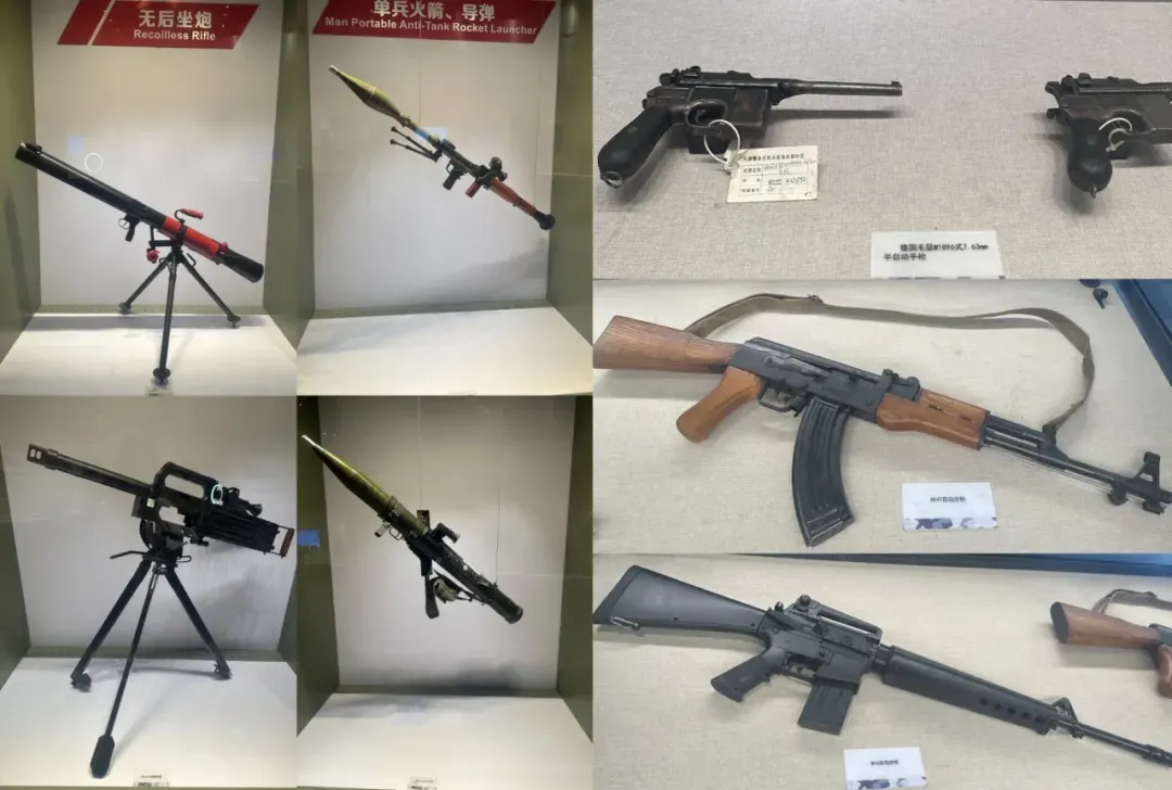 轻武器馆分上下二层,一层为《轻武器发展史》展区,按时间轴划分为古代、近代、现代、当代四个阶段,系统展示刀具、手枪、冲锋枪等轻武器演进脉络;