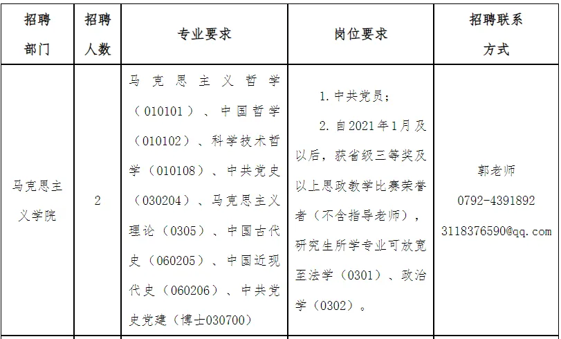 (二)马理论硕士可报岗位、人数、要求及联系方式一览表