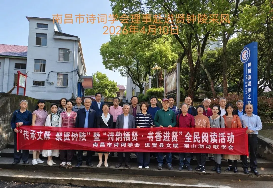 4月10日,南昌市诗词学会会长王凡平率副会长魏新、龚慧珠(兼秘书长)、陶其骖,老会长李金龙及学会理事、各县、区、开发区、新区诗社社长共18人,驱车前往进贤县钟陵镇栖贤书院采风,以挖掘赣鄱古韵诗词文化,让文脉沃土再焕活力。 采风团首抵钟陵镇政府,受到进贤县文联主席胡月明和镇党政班子热烈欢迎。在挂牌仪式上,王凡平会长把"南昌市诗词学会钟陵诗社"牌匾交给了钟陵镇党委书记万丽云,向副镇长吴小辉颁发“钟陵诗社”社长任命书。王凡平表示,钟陵历史悠久、人文荟萃,栖贤山承载厚重书院传统,诗社落地旨在激活本土文化,让诗词创作扎根基层、服务群众。万丽云书记称,将以此为契机擦亮"钟陵"文化名片,推动文旅融合与乡村文化振兴。吴小辉代表镇政府接受学会名家捐赠的诗词书法墨宝。 随后,采风团在吴小辉及钟陵诗社成员陪同下,前往栖贤山寻根文脉。此山虽不大,却被誉为赣鄱文脉源头——春秋孔子弟子澹台灭明曾在此设坛讲学,唐代戴叔伦建"明经堂",比白鹿洞书院早154年,为江西最早民间学堂 。历经岁月变迁,古书院虽已不存,但众人仍在遗址驻足,探寻文化根脉、合影留念,感慨进贤"进能纳贤"的深厚底蕴。 离开古址,采风团参观新落成的栖贤书院。书院占地128亩、建筑面积1.7万平方米,总投资约1.2亿元,由乡贤斥资兴建。建筑遵循赣派传统形制,青砖黛瓦、飞檐翘角,庄重典雅又兼具现代气息。书院以"栖贤"为魂,深挖澹台灭明、戴叔伦等名人文化,融合儒学源头、耕读传统与诗词雅韵,内设钱币、农耕、活字印刷等展厅,文化内涵丰富。 书院大堂前,采风仪式简朴庄重。南昌市诗词学会东湖诗社社长毛国建代表全体诗友致辞:"谷雨时节,栖贤山青翠如画,新书院落成乃南昌文坛盛事。古坛重焕文光,子羽遗风绵延千载,三教文脉相融,钟陵湖山弦诵不绝 。今书院新立,重拾千年文脉、再扬翰墨风华,尽显传统文化生生不息之力。愿以诗词为媒、文脉为纽带,让这片沃土再掀书香浪潮。祝书院薪传不息、文脉绵长,汇聚文友、深耕诗坛,创作出彰显时代风骨、承载家国情怀的华章,让钟陵文韵远播、中华诗香永续!" 书院值班院长详细介绍建设与展陈情况,采风团成员边听边看、赞不绝口,多位诗人现场即兴赋诗,抒发对书院落成的欣喜与对文脉传承的感慨。 据了解,此次采风是南昌市诗词学会挖掘传统诗词文化、建设基层诗词研讨基地的重要探索。全体参与者将创作诗词作品,学会将推出专刊,以贺栖贤书院新姿、传赣鄱文脉新声。