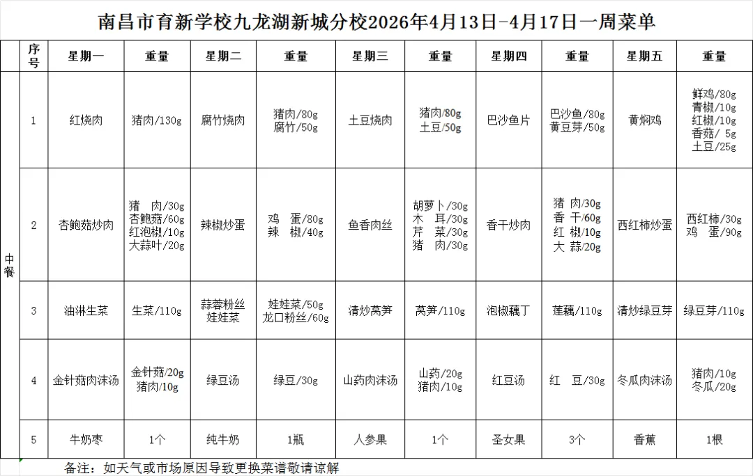 人间烟火味,最抚学子心。4月13日至4月17日校园营养午餐如约登场,均衡的膳食、可口的美味,为学习注入动力,让成长更有底气,好好吃饭,不负韶华。