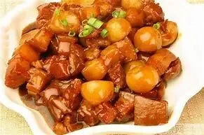 红烧肉、杏鲍菇炒肉、油淋生菜、金针菇肉沫汤、牛奶枣