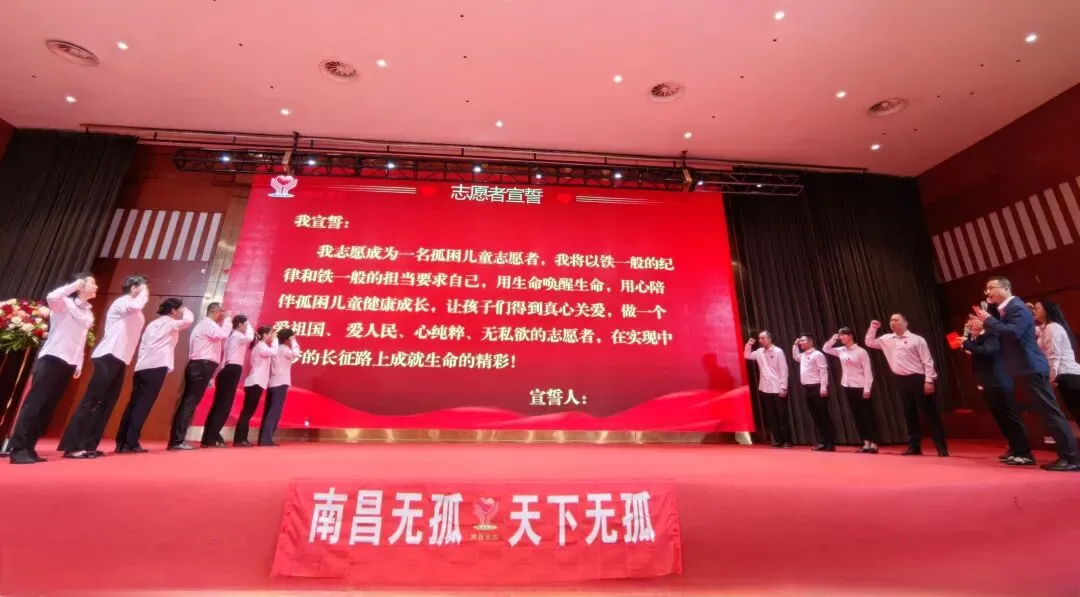 他代表全体志愿者承诺:用真心对待每一个孩子,用爱心温暖每一颗童心,用耐心陪伴他们走过成长的每一段旅程。