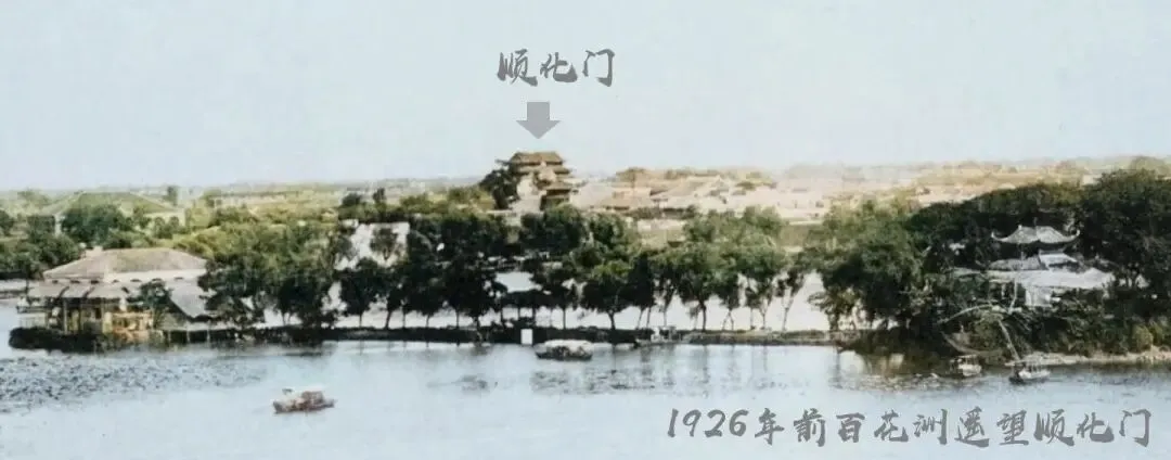 2、顺化门瓮城平面呈现梯形(东西长约80米,南北宽约50~60米),占地面积≈4400平米。从顺化门外吊桥街过护城河石桥,可直接进入外城门内的瓮城,瓮城中有3排房屋(历史上此门兵防为重),看似把进城盘查路线分为了2路。最后都集中于内城门楼下方进城(今天的孺子路)。西湖边(今孺子亭公园北侧)是南昌县和新建县的县学所在地。