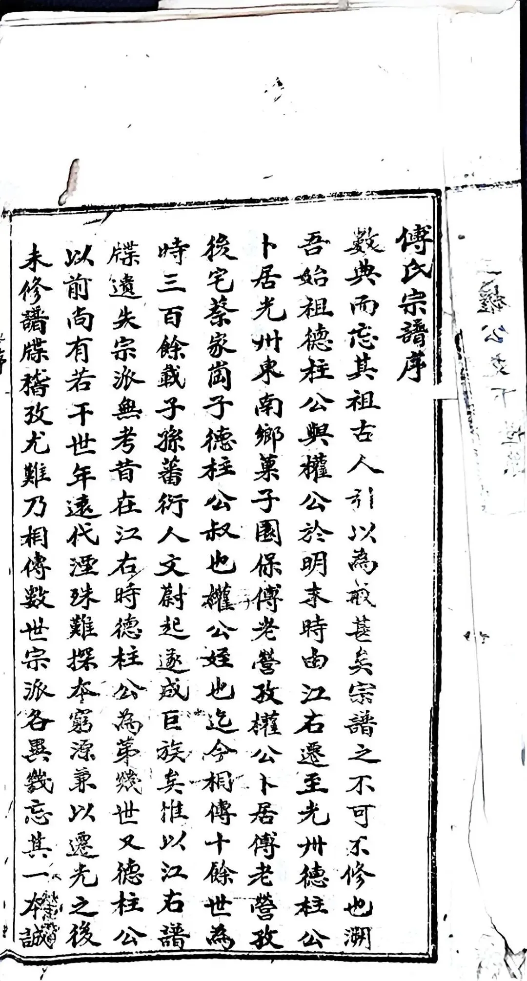 自顺治六年(1649年)起,清政府先后颁行招垦安置措施,规定各地荒土可任“开垦耕种,永准为业”。光州傅氏德柱公与权公叔侄二人,正是在1650 年前后从江西南昌迁徙至光州的。这个时间点,恰好处于清廷大规模强制移民工程的启动阶段,与历史背景完全吻合。