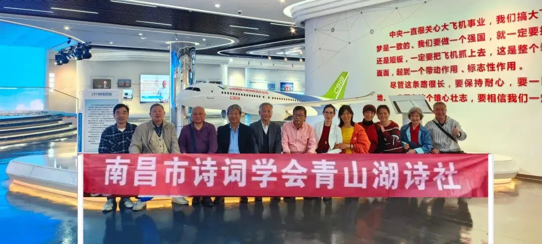 ——青山湖诗社与青云谱诗社联合赴南昌航空城采风圆满举行 为感受南昌航空科创魅力,以诗词书写时代风采,献礼新中国航空工业创建75周年,4月11日,依照南昌市诗词学会上半年采风安排,青山湖诗社与青云谱诗社联合组织诗词爱好者,走进南昌航空城开展主题采风活动,以诗笔礼赞航空强国辉煌成就。 活动中,诗友们先后参观航空工业洪都发展展厅、航空装备展示区,聆听航空工业发展历程,感受南昌航空产业蓬勃动能。作为新中国航空工业重要摇篮,南昌航空城承载着航空报国、航空强国的初心,航空工业洪都历经多年攻坚,实现军用航空装备跨越式升级,完成主战机装备从第一代到第四代的迭代,推动航空工业实现机械化向信息化、陆基向海基等全方位转型。 民用航空领域同样硕果累累,新舟60、C909、C919飞机翱翔天际,C929大飞机关键部件研制突破技术难关,尽显中国航空自主创新实力。诗友们驻足观展,倍感自豪,创作灵感油然而生。 参观结束后,曾任职于洪都的青云谱诗社陶社长,结合自身亲历为大家作精彩分享总结,双社诗友围坐交流,共话航空发展感悟。 此次采风既落实了市诗词学会活动部署,搭建了诗社交流平台,更让传统诗词与航空科技深度融合,以诗言情、以文抒志,为新中国航空工业75周年写下了浓墨重彩的一笔。