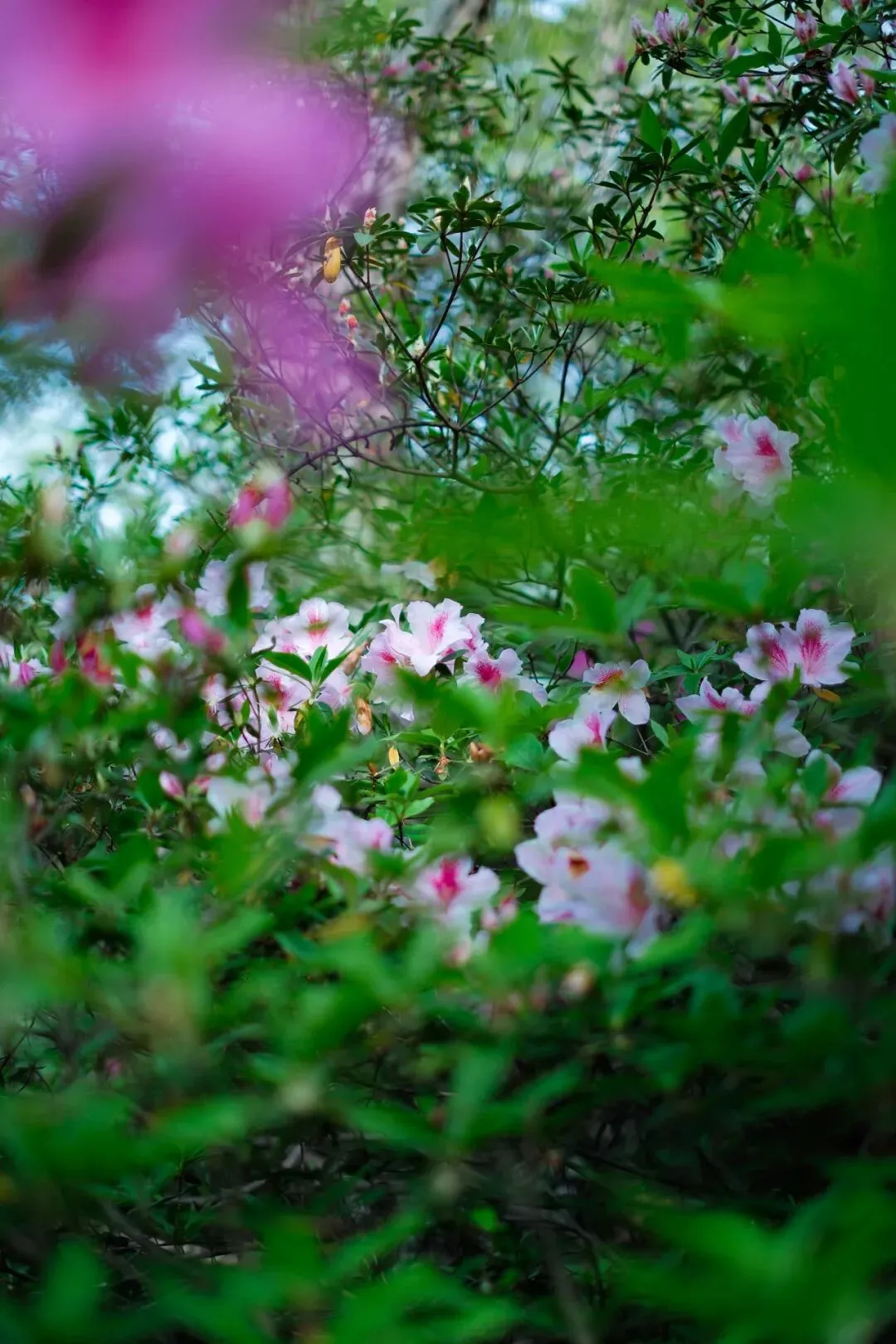 公园里的杜鹃花,在新北门附近,靠近盒马生鲜超市这边,它就像莫奈的油画,有着十足的韵味。