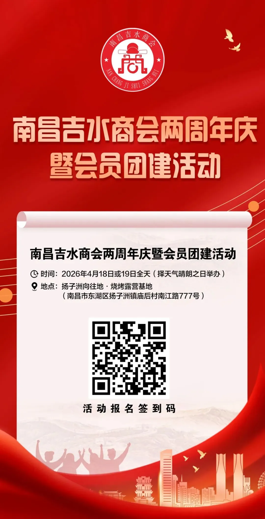 值此商会成立两周年之际,为感恩相伴、共叙乡情、共谋发展,商会定于下周六(2026年4月18日)举办南昌吉水商会两周年庆典暨会员团建活动,诚邀全体会员、顾问、专委会成员及一路来关心支持吉水商会发展的在昌吉水籍乡贤拨冗出席,共襄盛会、共话未来。