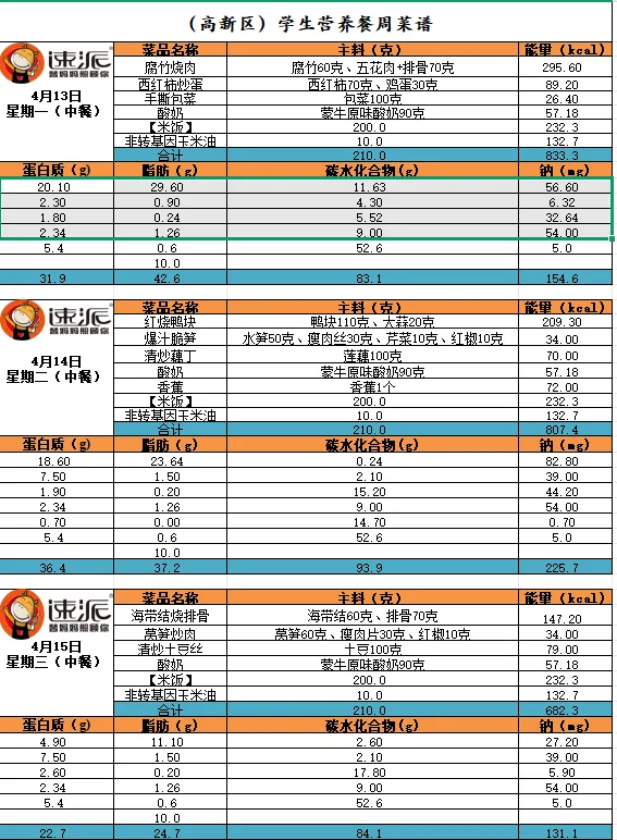 >【每周食谱】南昌高新区第三小学2025-2026年下学期第七周食谱