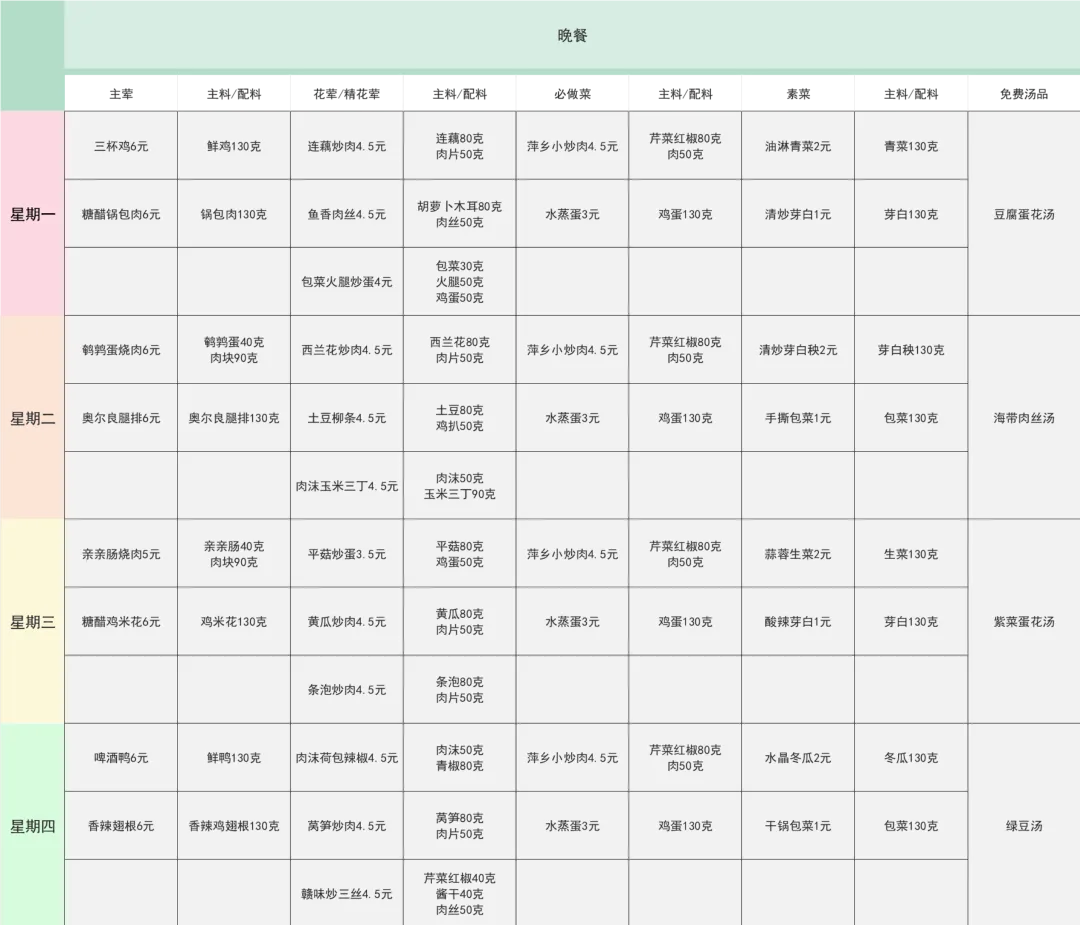 本周菜谱