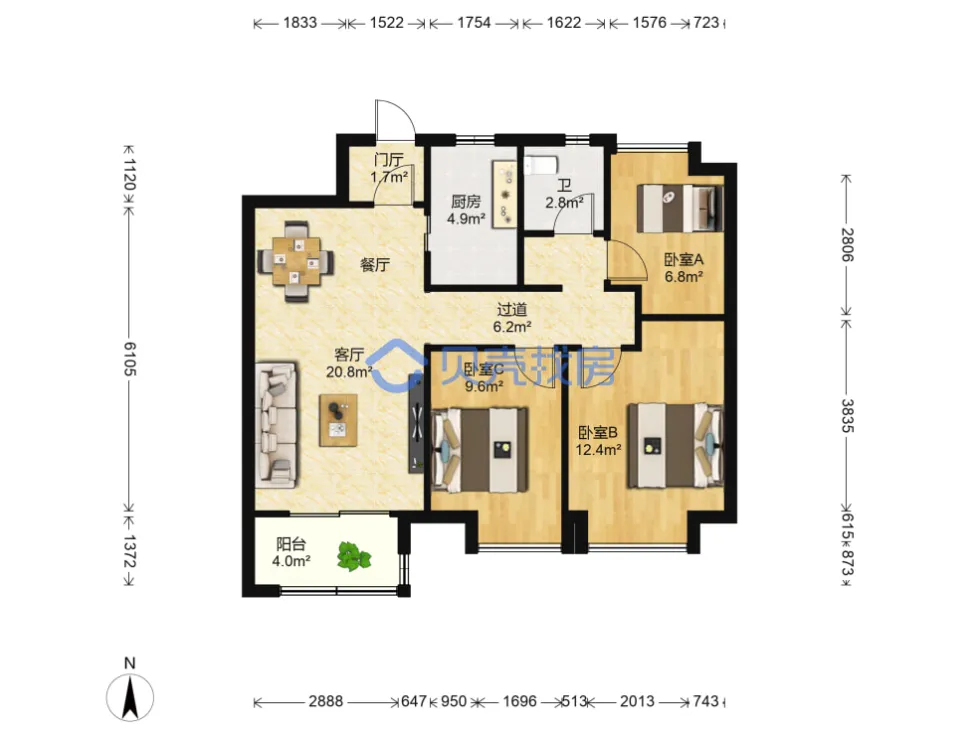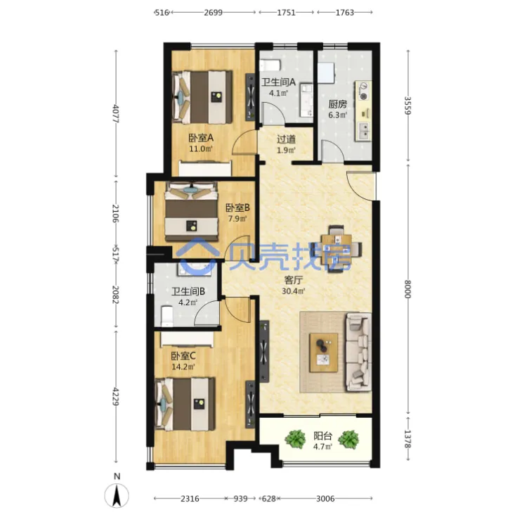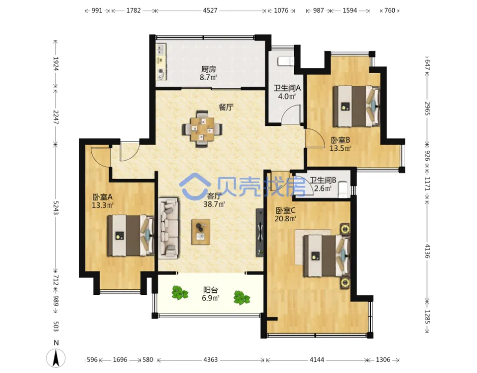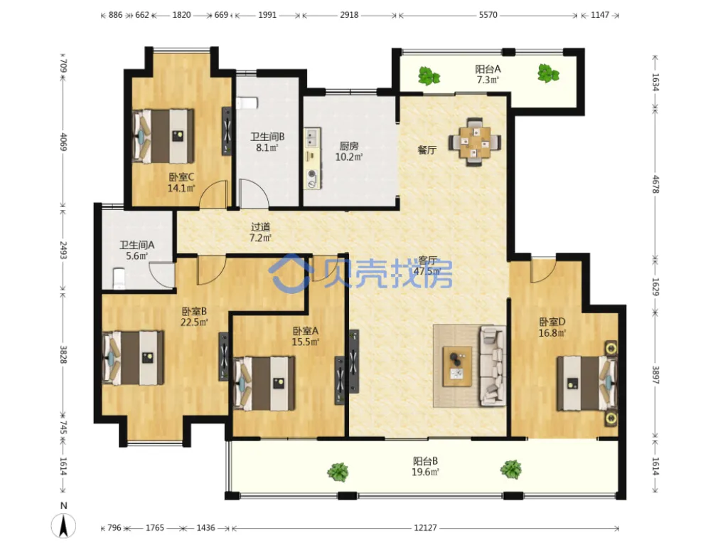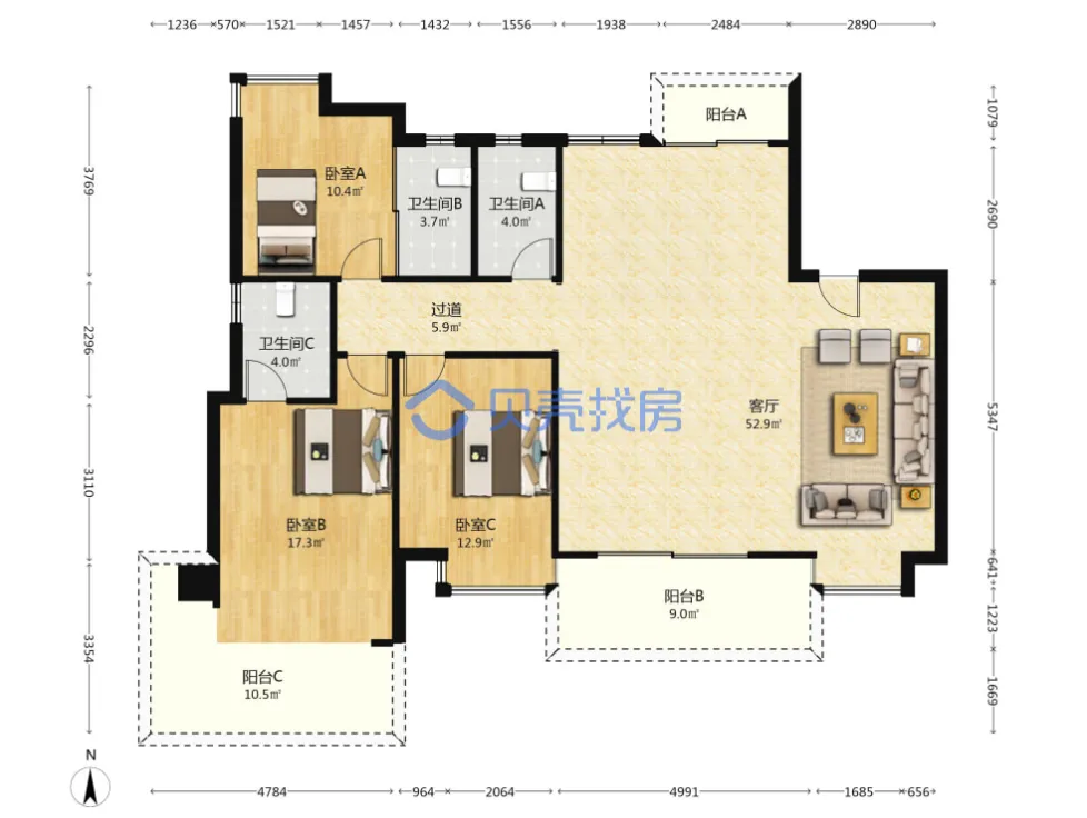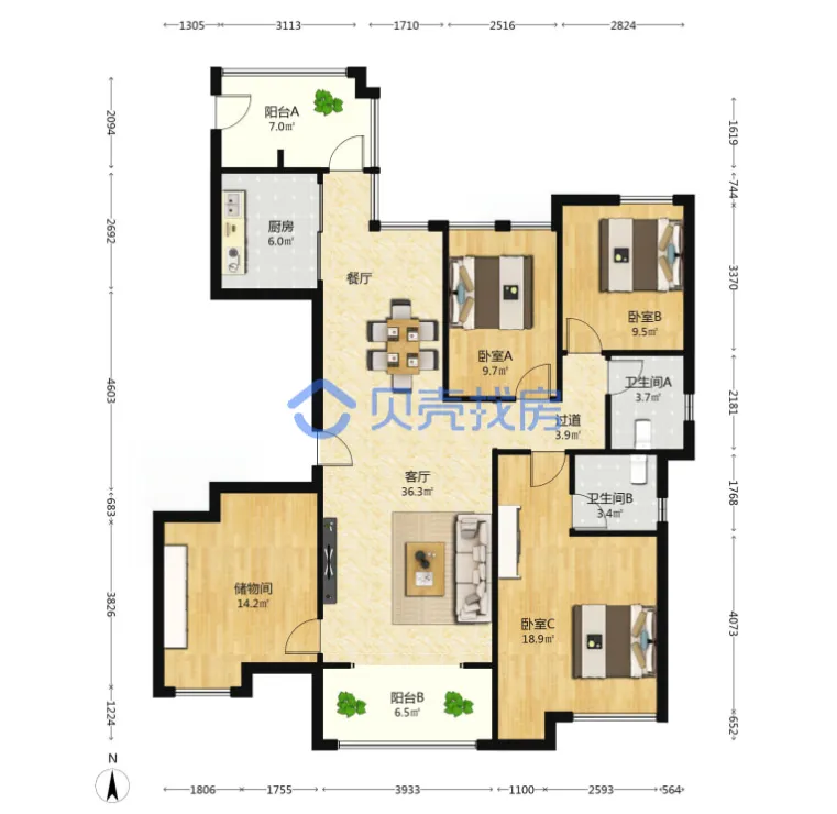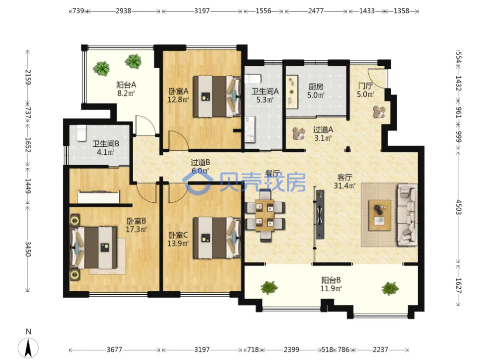 万科海上传奇,118.37m²,155万