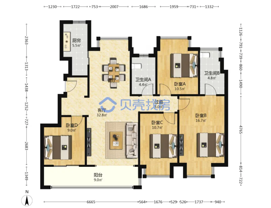 联发万科海上明月,144.9m²,175万,四房,全新精装修,小高层