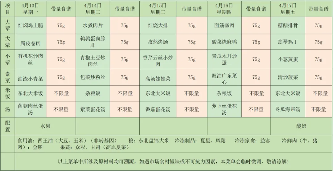 南昌路小学第7周营养食谱(4.13-4.17)