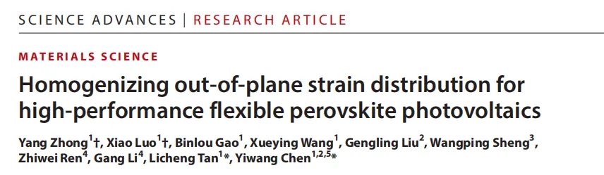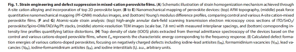 柔性钙钛矿太阳能电池因A位掺杂不均导致面外应变分布不均匀、富PbI₂表面存在残余应力,引发缺陷增多、力学性能差与长期稳定性不足,限制其高效稳定应用。