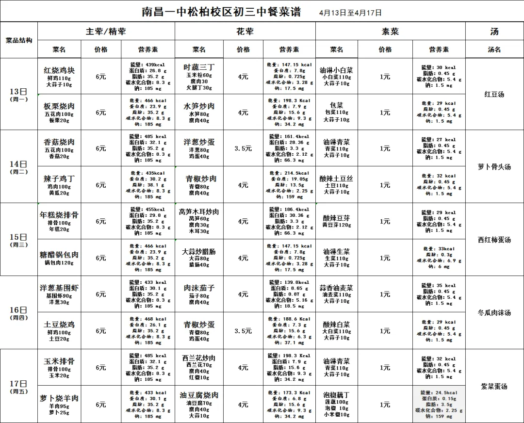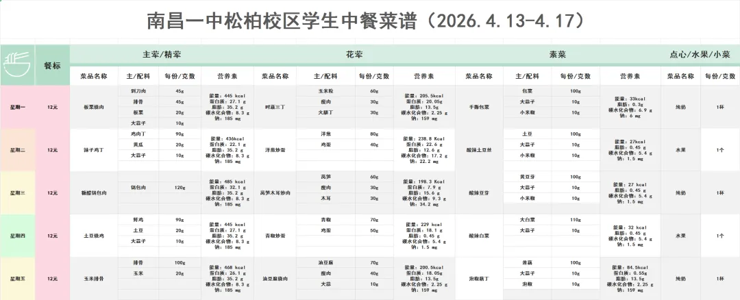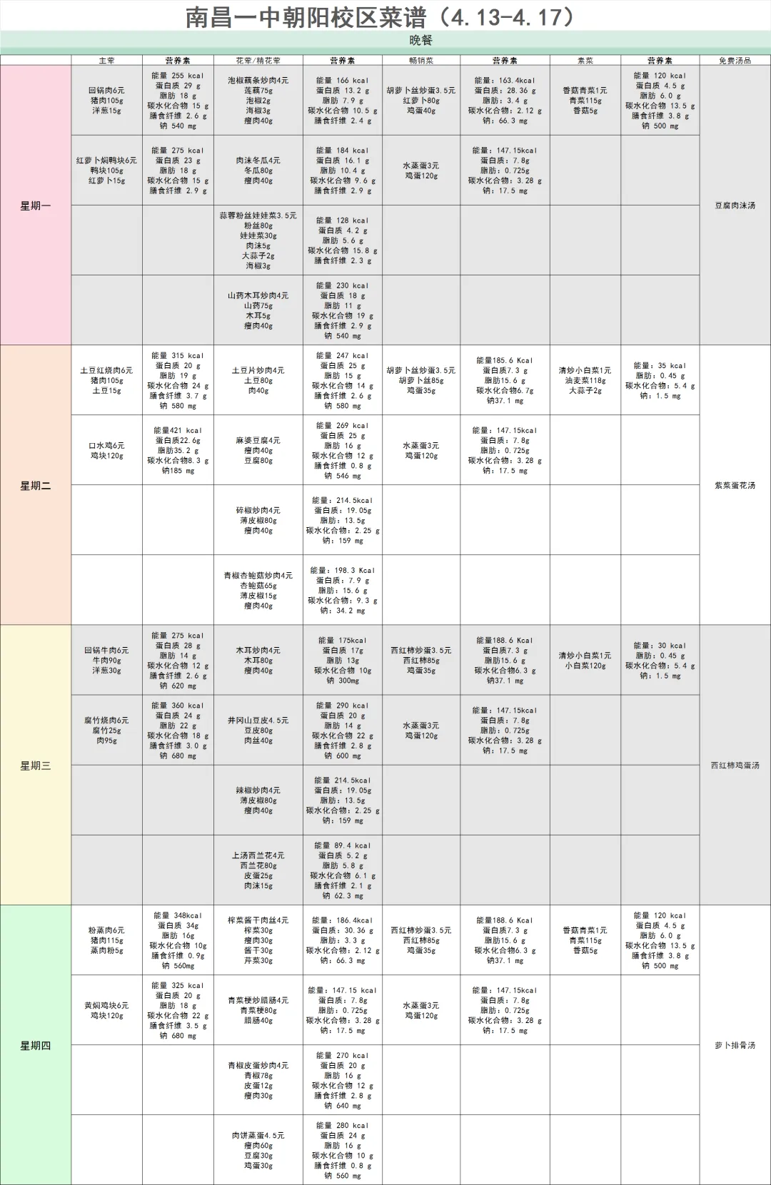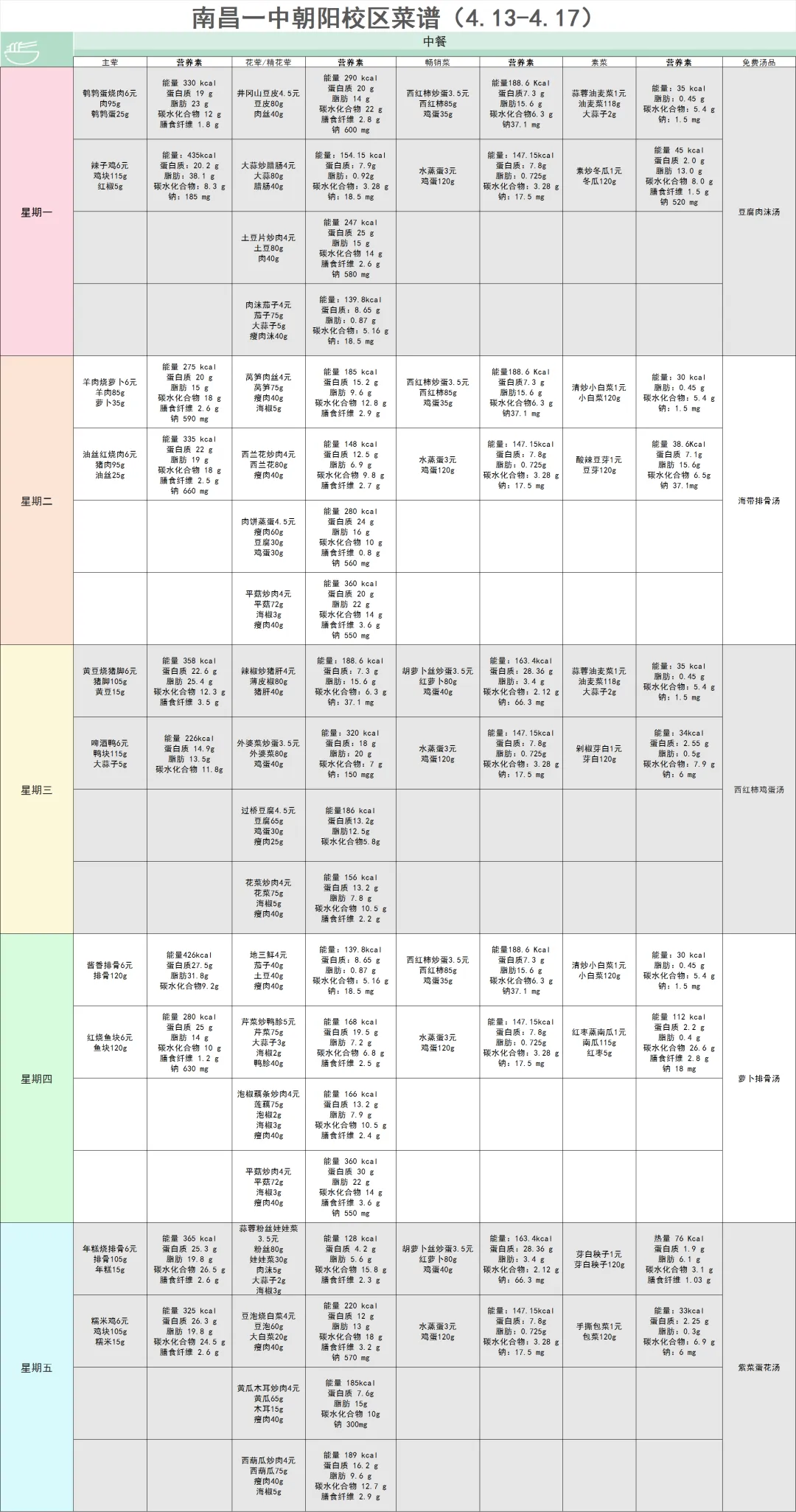【食育·舌尖的幸福】南昌市第一中学4.7-4.10营养食谱
