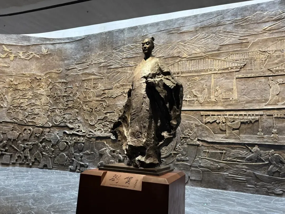 海昏侯墓是我去南昌最大的期待。早在2017年,我参加了一个海昏侯墓考古队长杨军的讲座,题目是《西汉王侯的地下奢华》,印象中他的讲座内容非常完整,当时朋友圈就好多人让我去南昌看看,评价是:非常震撼。海昏侯墓距离南昌市区50公里多,大约1小时车程,经我非常周密的计划,10点从南昌西下火车,去酒店放好行李,11点30分准时出现在了万寿宫的大巴上车点。跟随导游开始了我的海昏侯墓半日游。导游是江西人,非南昌本地。大巴上,她给我们简要又完整地介绍了江西省的大小城市,也介绍了海昏侯刘贺的基本情况。在此前,汉代的王侯墓我参观了两个,一个是湖南省博物馆陈列的马王堆汉墓,另一个是广州的西汉南越王博物馆。从严格意义上讲,像海昏侯墓这样博物馆建在考古现场的,我还是第一次看。在火车上时,我正在看一本关于海昏侯墓的科普书,书里的刘贺给我的第一感觉是悲情人物,虽然也有自己作死的成分在。但当走到海昏侯博物馆,树了一个刘贺像,像中的刘贺少年意气,昂首挺胸配一袭长袍,完全不是“为人青黑色,小目,鼻末锐卑,少须眉,身体长大,疾痿,行步不便”的样子。想必,像中的刘贺,大多是少年时准备前往未央宫的样子吧。