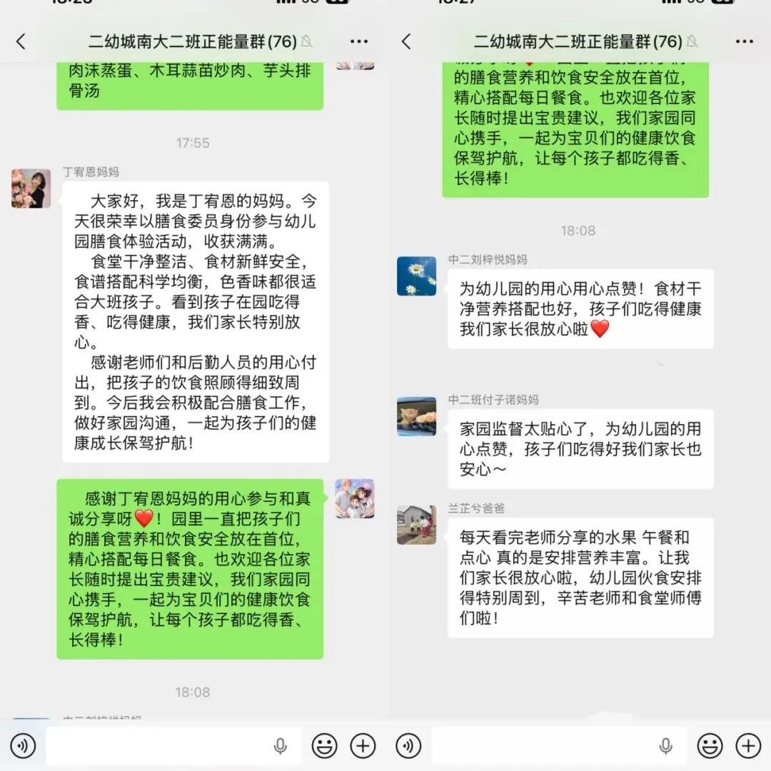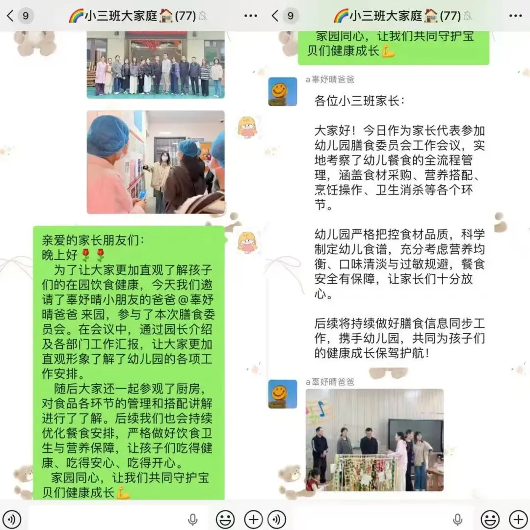 从精心搭配的每一餐到趣味十足的教学安排,幼儿园的每一个细节都凝聚着老师们的用心和爱。通过今天的交流,家长们对我园的各项工作给予了极大的认可,这份信任和支持是我们前进的最大动力。为了让宝贝们在幼儿园的每一天都充满快乐和成长,我们将一如既往地用心做好每一项工作,为孩子们健康成长保驾护航!