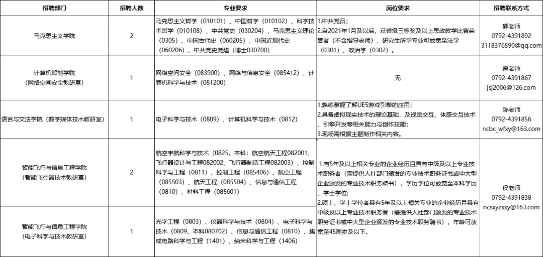 因学院教育事业发展需要,现面向社会公开招聘教学岗人员若干,具体如下: