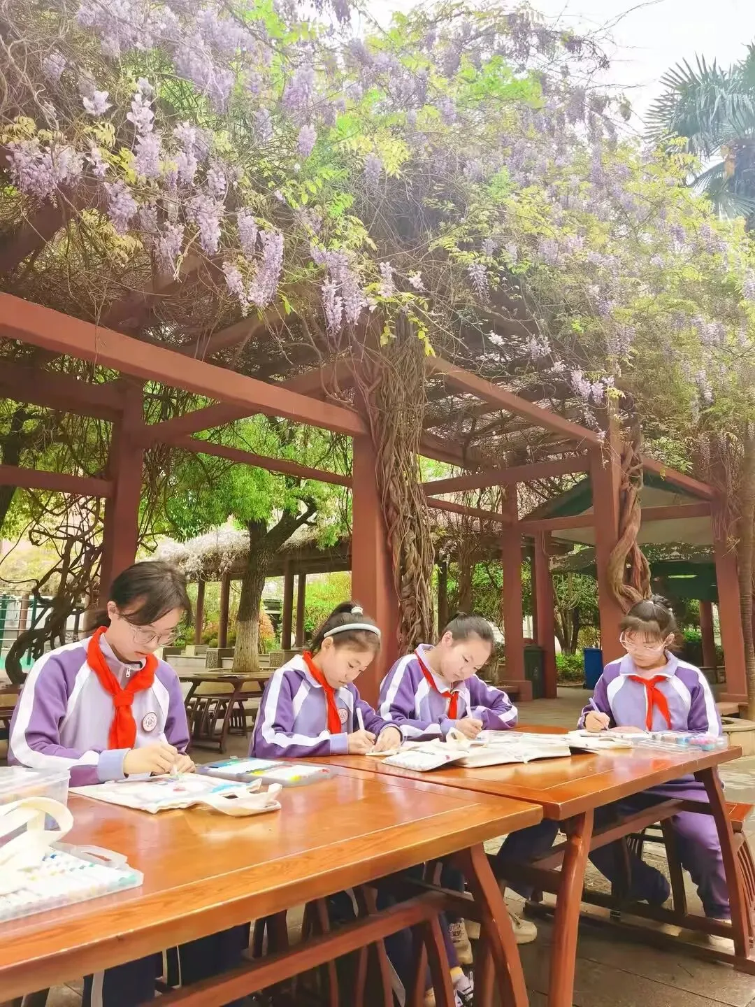 紫藤花开,绘就校园美好;文明同行,点亮英雄之城。本次紫藤节手绘活动,不仅让同学们定格了校园春日美好,更深化了大家对英雄城的文化认同,让文明理念根植心中。愿紫藤花香常伴校园,愿文明新风永驻童心,让我们以行动践行文明,让青春在爱校爱城的路上绽放光彩!