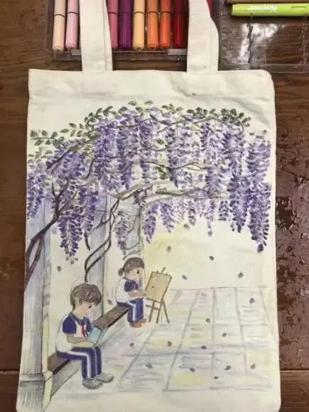 本次活动的优秀手绘帆布袋作品,现已在紫藤长廊展出,每幅作品旁都配有主题解说。校园公众号也同步上线优秀作品合集,开启“最美文明手绘帆布袋”投票。获奖作品还将作为文明宣传礼品赠予师生与社区,让手绘帆布袋成为流动的文明宣传载体,让紫藤韵与文明风一路传递。
