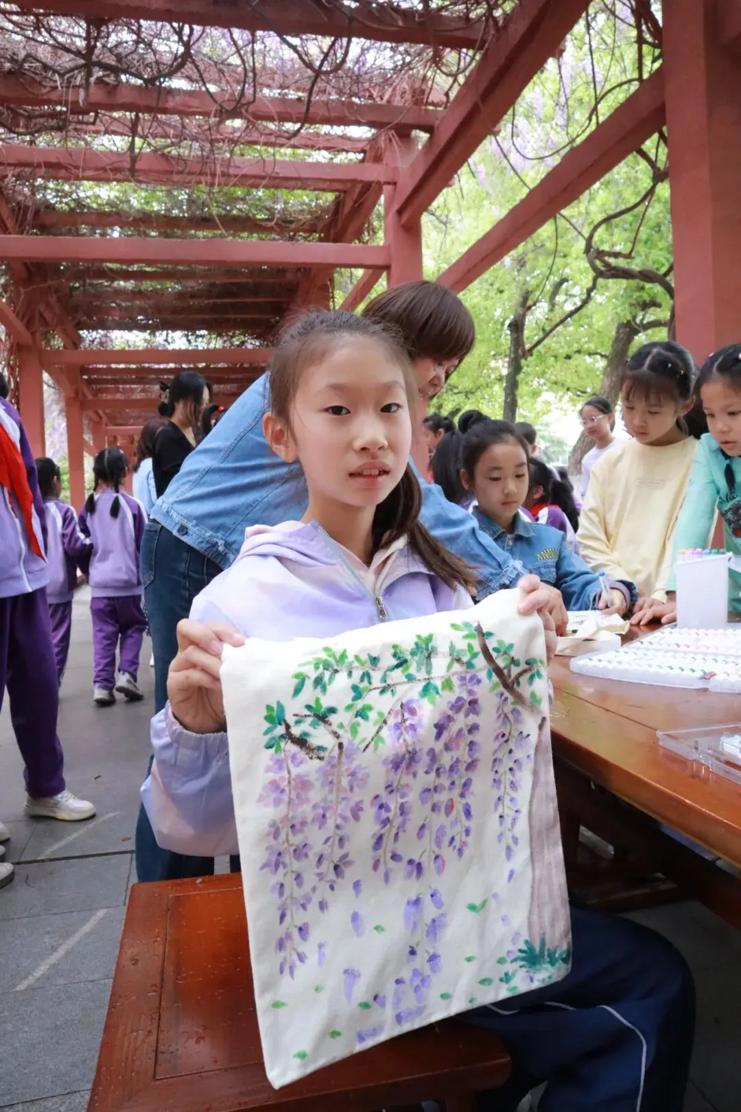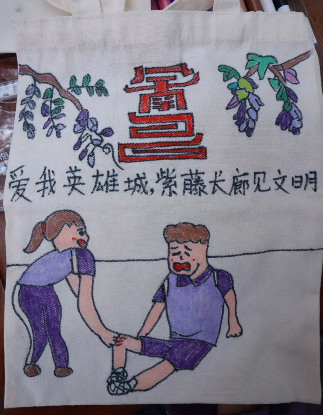 春日紫藤绕廊,花香漫满校园;英雄城南昌底蕴深厚,文明新风拂面。为让校园春景与红色文明相融,我校特举办紫藤节主题帆布袋手绘活动。全校学子齐聚紫藤长廊,结合前期红色阅读及红色行走收获,以画笔为媒,绘紫藤美景、展英雄城风采、传文明新风,让艺术创作成为爱校爱城的生动表达。