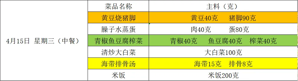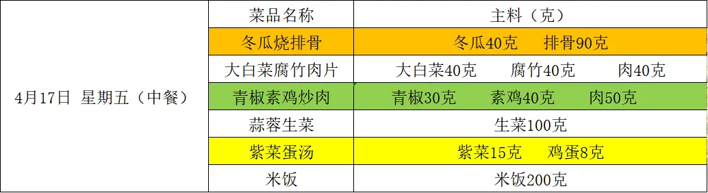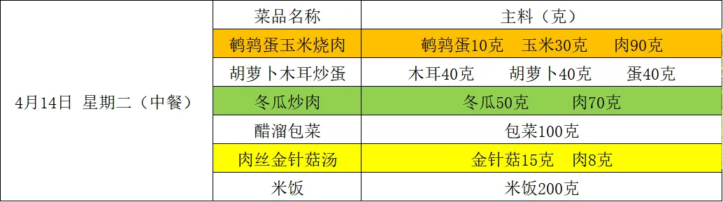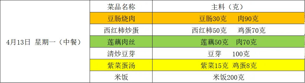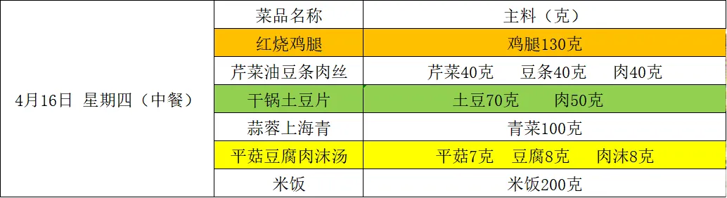 【阳光午餐】南昌二中高新校区一周食谱(4月13日-4月17日)