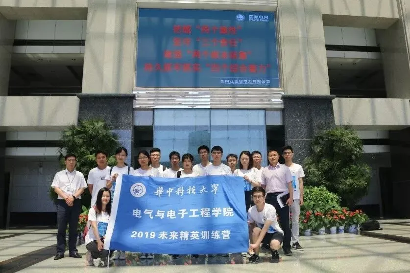 为深入贯彻习近平新时代中国特色社会主义思想和党的十九大精神,回顾新中国成立七十年来我国在电力工业所取得的历史性成就,引导广大学子进一步认识电力工业的重要意义,牢记强国使命,结合个人成长与社会建设,肩负时代责任与民族希望,同时增进校企交流,7月21日至26日,华中科技大学电气与电子工程学院“未来精英训练营”暑期社会实践队前往国网江西省电力有限公司,开展走访调研活动,深入调研乡村精准扶贫政策、清洁能源发展现状、电力营商环境优化措施等。实践队由电气学院辅导员李毅带队,15名硕士研究生组成。