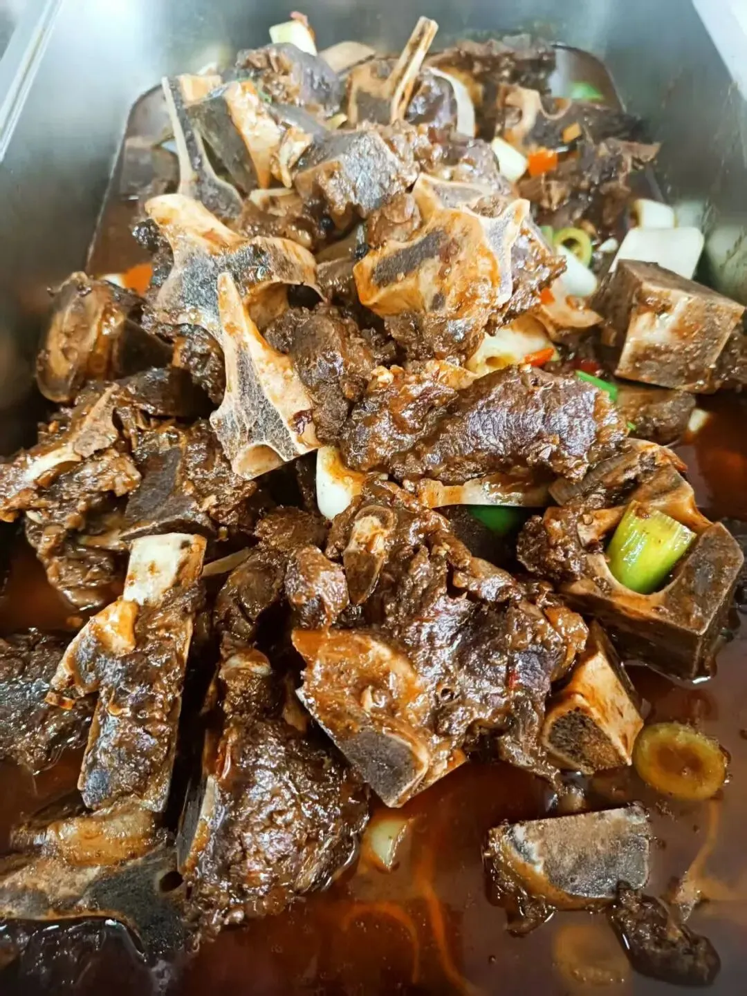 酱汁牛龙骨,粉蒸肉,蚂蚁上树,麻婆豆腐,肉沫雪里红,清炒冬瓜,清炒青菜,木耳猪肝汤。