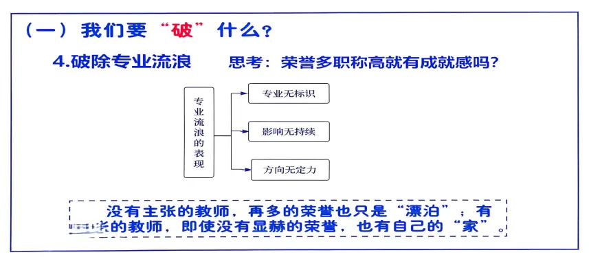 一个没有主张的教师,再多的荣誉也只是漂泊,有主张的老师,即使没有显赫的荣誉,也有自己的“家”。