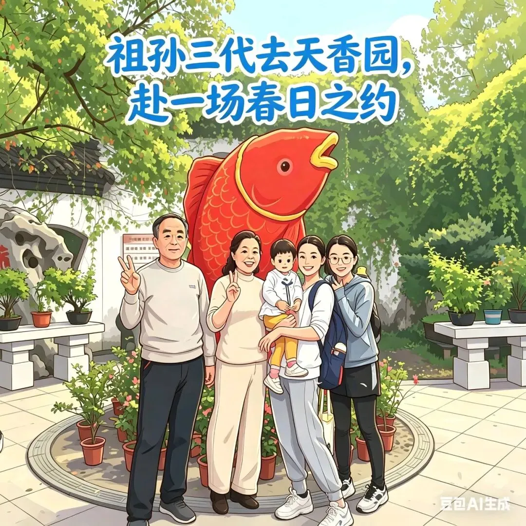 趁着晴好的春日,我和老公带着大女儿、二女儿,还有可爱的小外孙女,一起来到了南昌天香园。这里素有“都市候鸟天堂”的美誉,湖光、园林、飞鸟、萌宠相映成趣。