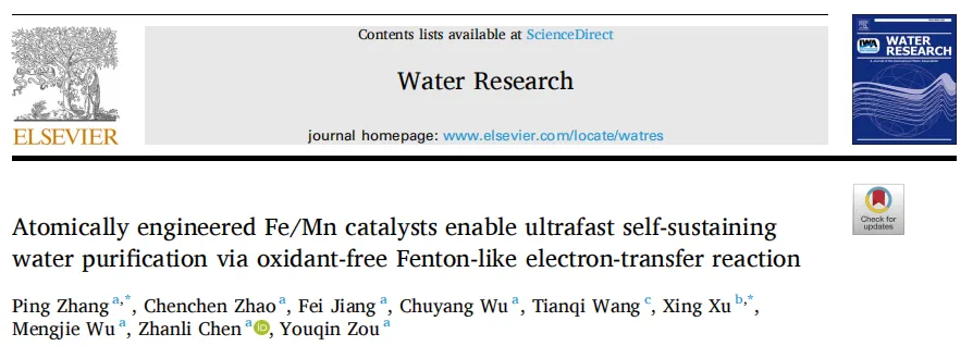 文章题目:Atomically Engineered Fe/Mn Catalysts Enable Ultrafast Self-Sustaining Water Purification via Oxidant-Free Fenton-like Electron-Transfer Reaction