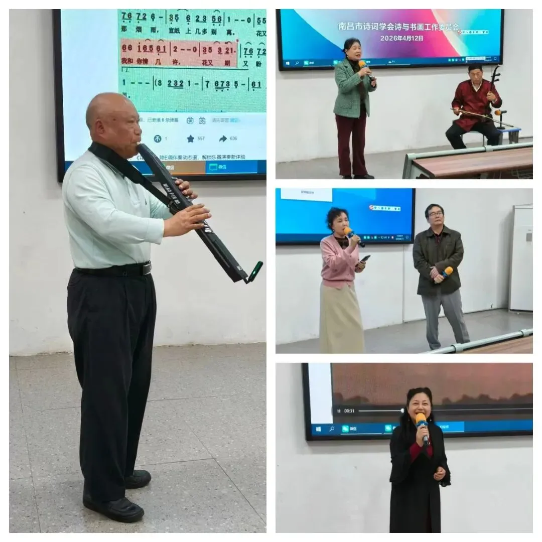 与上午专题讲座的“一人讲、众人听”不同,下午的诗词沙龙则呈现出众人参与的生动局面。第十九次沙龙活动依然由南昌市诗词学会诗与书画工作委员会主任林汉梁老师主持。此次沙龙节目形式多样、内容精彩纷呈。演出在激昂恢弘的集体舞蹈中拉开序幕,随后,声乐节目相继登场,既有独唱演绎的经典曲目,也有男女声合唱的深情旋律。朗诵环节尤为丰富,参与者们或朗诵自作诗词新篇,或深情演绎中外经典诗作,其中《将进酒》更以配乐朗诵、双人合作等不同形式得到多元呈现。活动亦包含富有地方特色的曲艺表演,搭配传统器乐伴奏,韵味十足。此外,电吹管独奏带来了新颖的听觉体验,而外文歌曲的演唱则增添了别样风采。最终,沙龙在另一支热情洋溢的集体舞蹈中圆满落幕,充分展现了会员们的多才多艺与学会活跃的文化氛围。