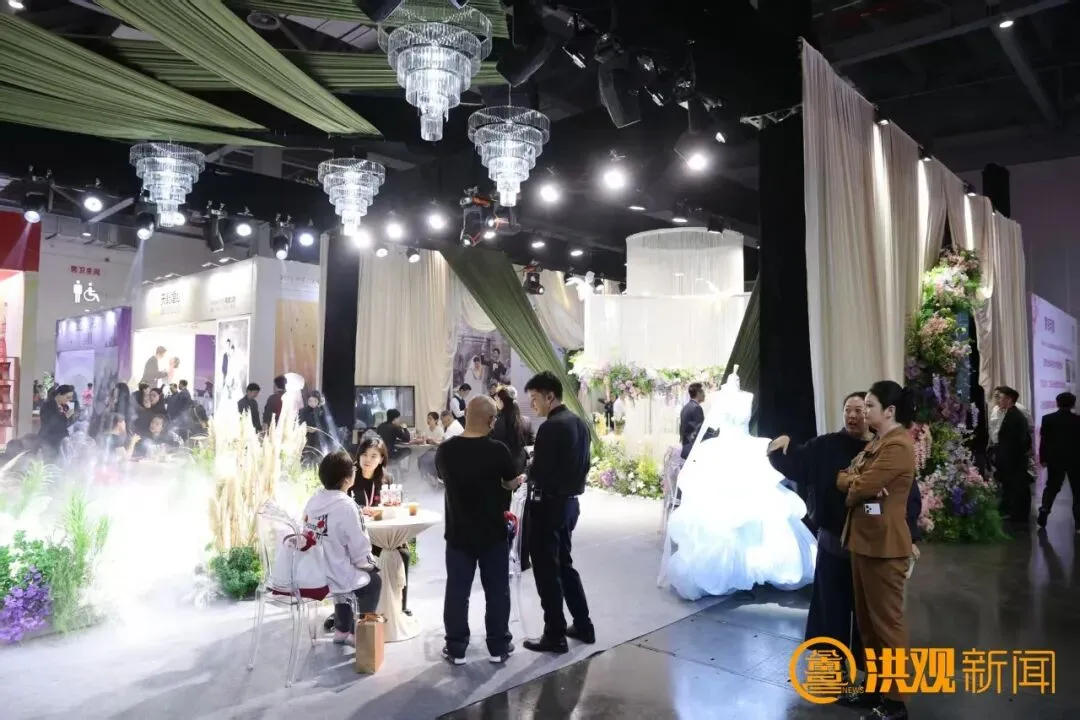 值得一提的是,火爆的婚博会现场还出现了一则有趣的插曲。由于现场人气太高,隔壁即将举办的宠物博览会也派出工作人员来“蹭热度”。