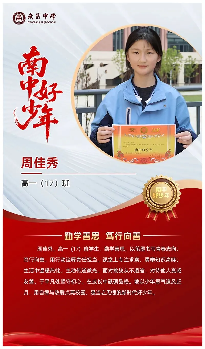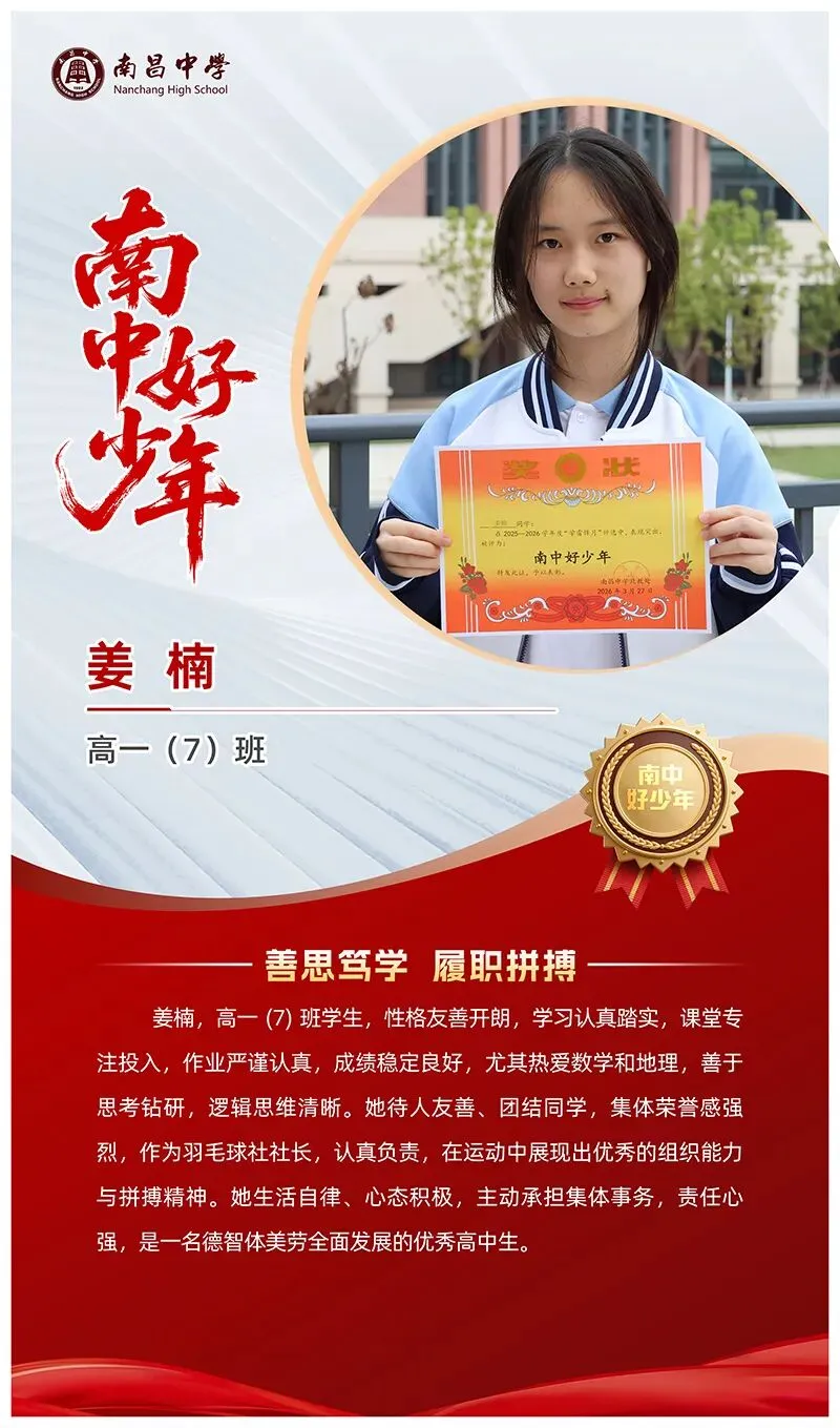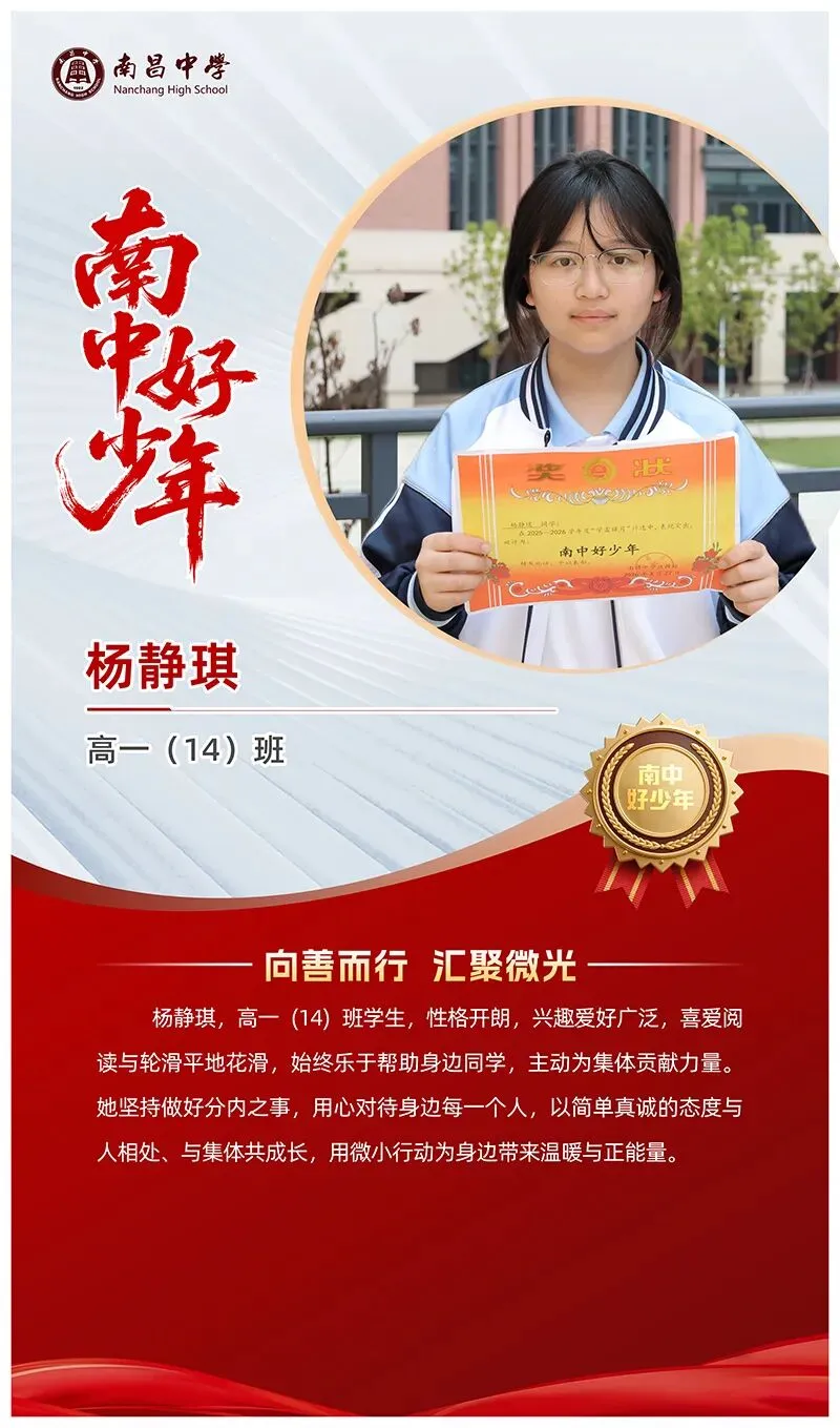 近期,南昌中学九龙湖校区高一年级“南中好少年”评选圆满落幕,一批优秀少年闪亮登场,成为校园里最亮眼的风景!