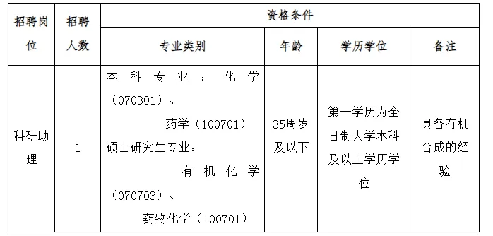 因工作需要,需对外公开招聘1名编外合同制科研助理,具体要求如下: