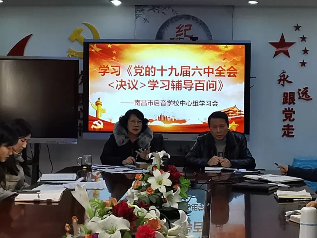 南昌市启音学校中心组集中学习《党的十九届六中全会<决议>学习辅导百问》