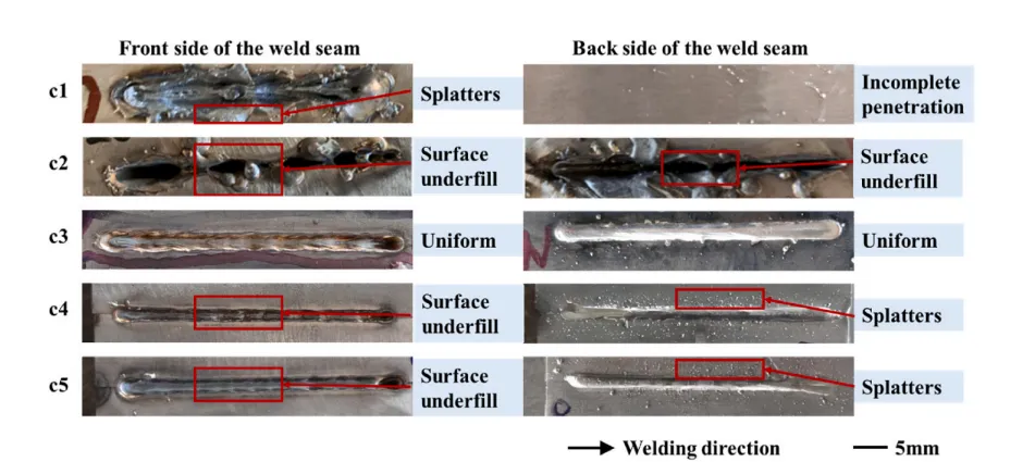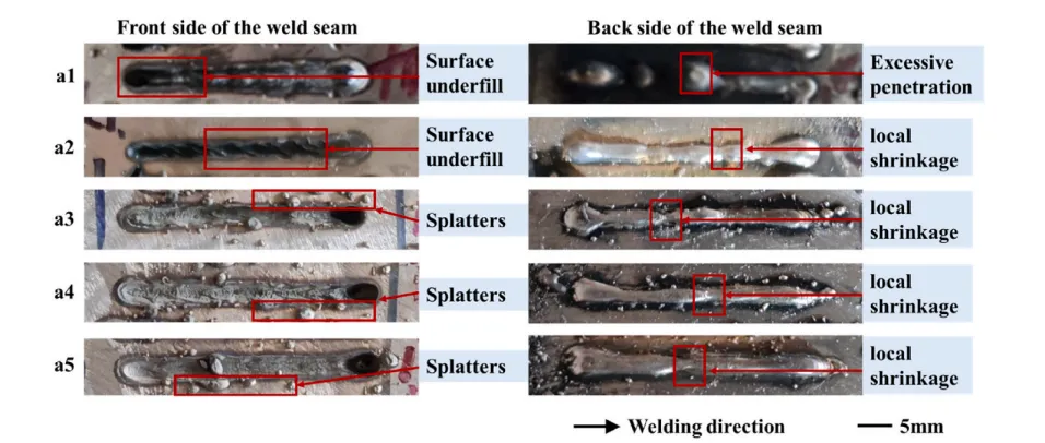 图5. 不同激光焊接速度下焊缝的宏观形貌。