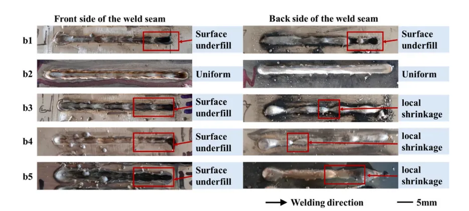 图6. 不同激光离焦距离下焊缝的宏观形貌。