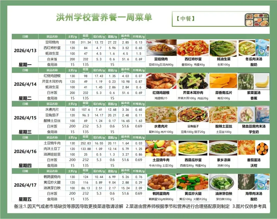 为了让您清晰了解孩子的在校饮食情况,现将本周营养食谱公布如下。